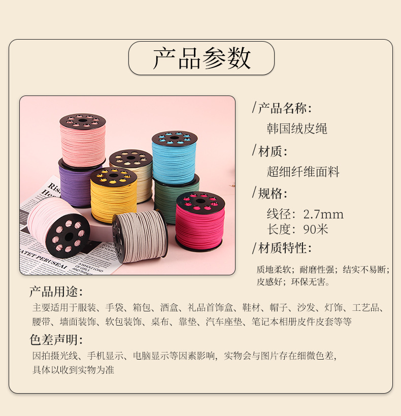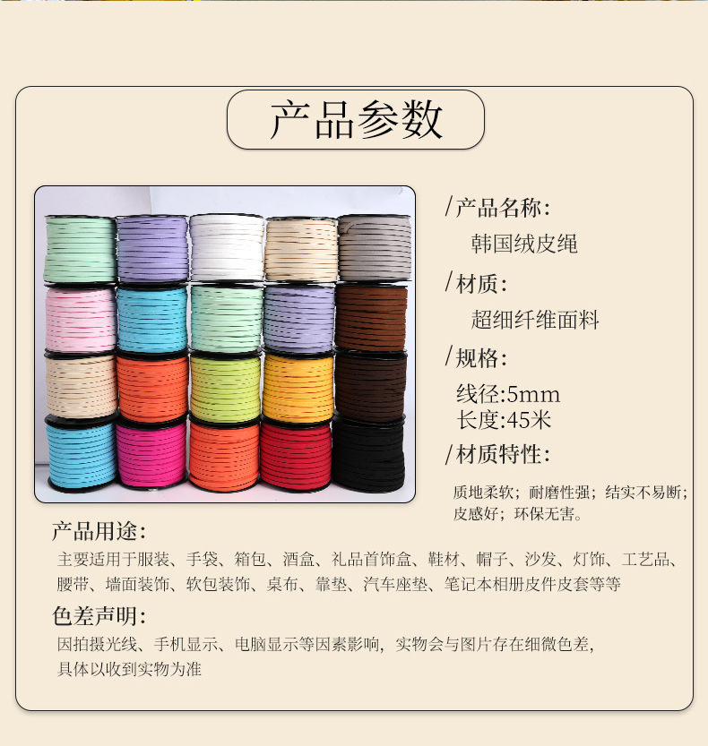 45米5mm韩国绒皮绳鹿皮绳包装绳编织手链diy饰品配件线材项链绳子