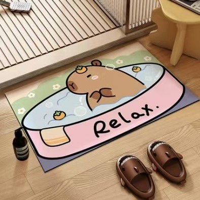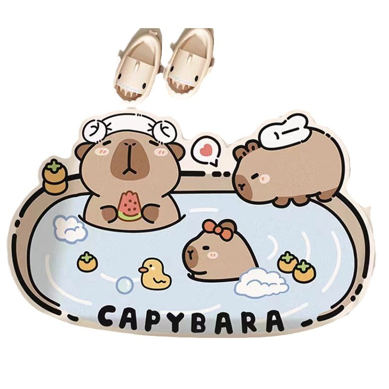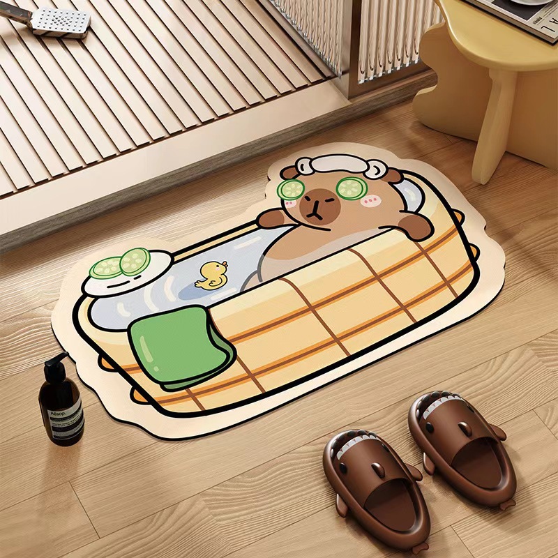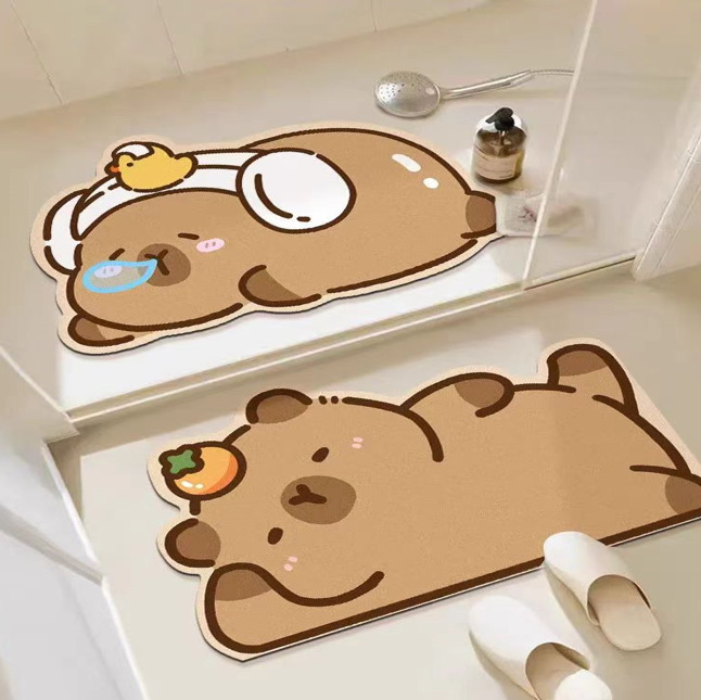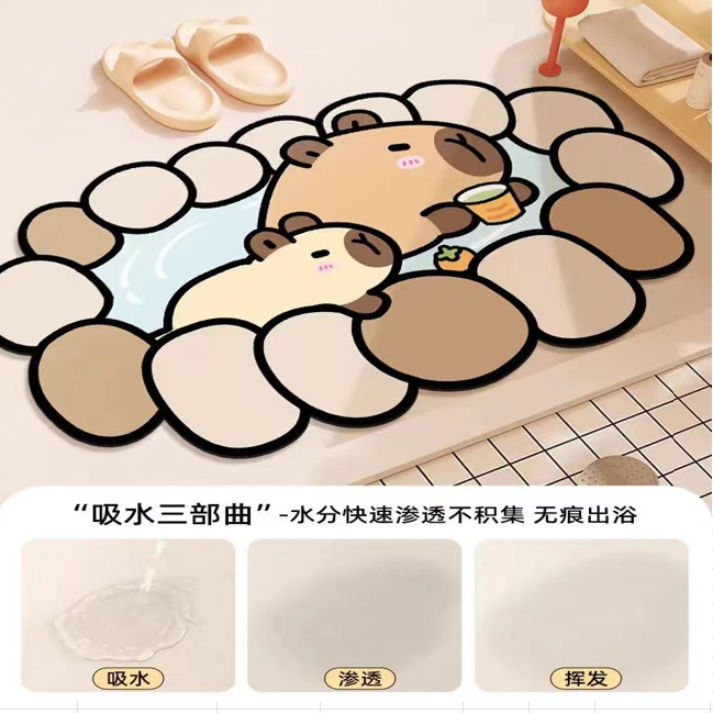 卡通可爱浴室吸水地垫卫生间门口防滑脚垫卡皮巴拉硅藻泥厕所垫