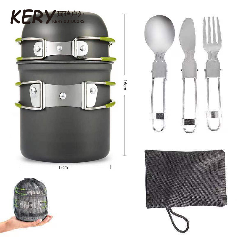 户外套锅 亚马逊热卖 户外套锅1-2人 便携式野营炊具带餐具
