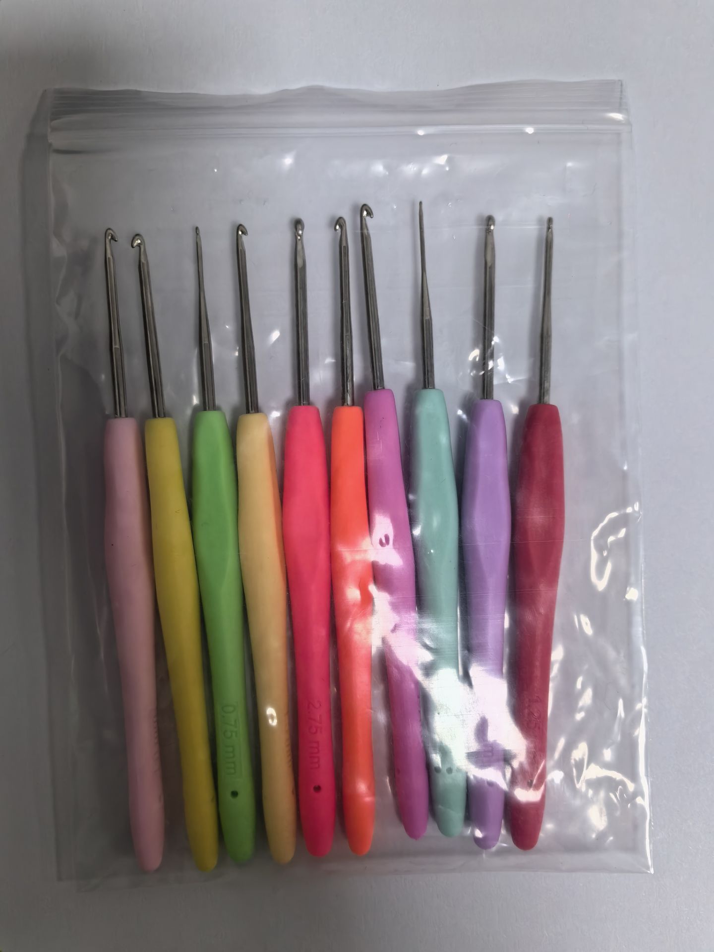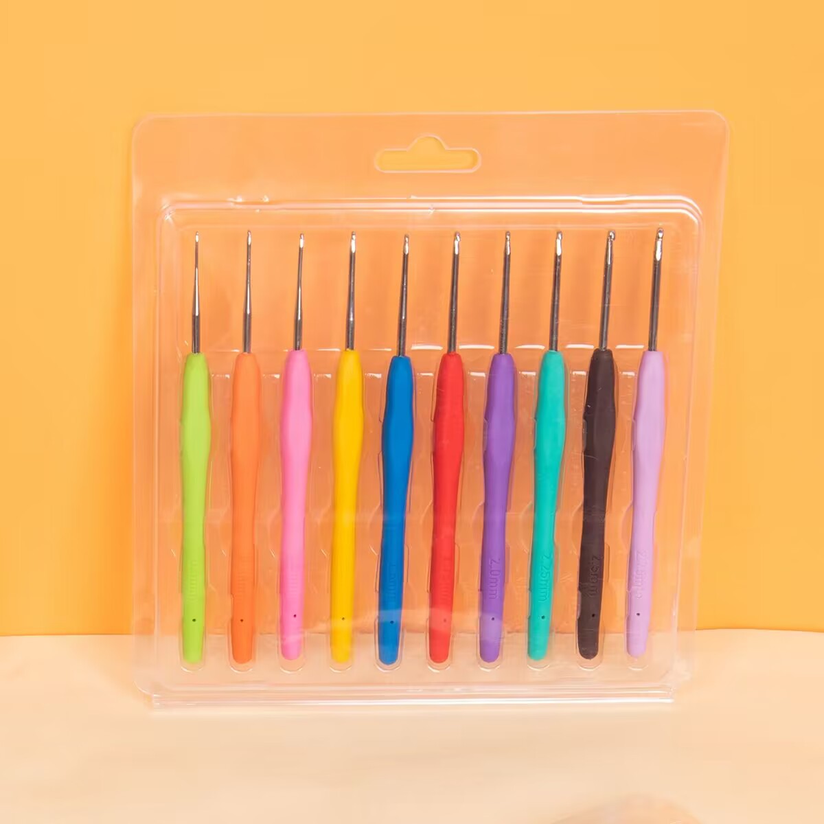 亚马逊10支TPR蕾丝钩针 软柄铝钩针套装彩色铝钩针蕾丝勾针细钩针