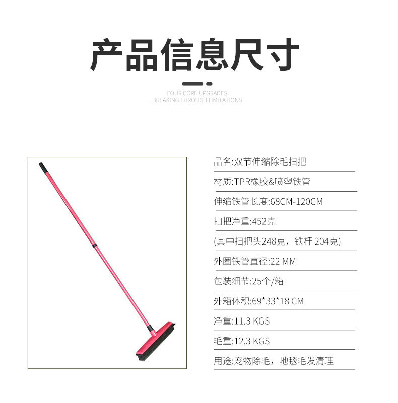 双节伸缩除毛扫把地毯除毛刮灰尘免手洗橡胶地板刷清洁狗毛擦窗