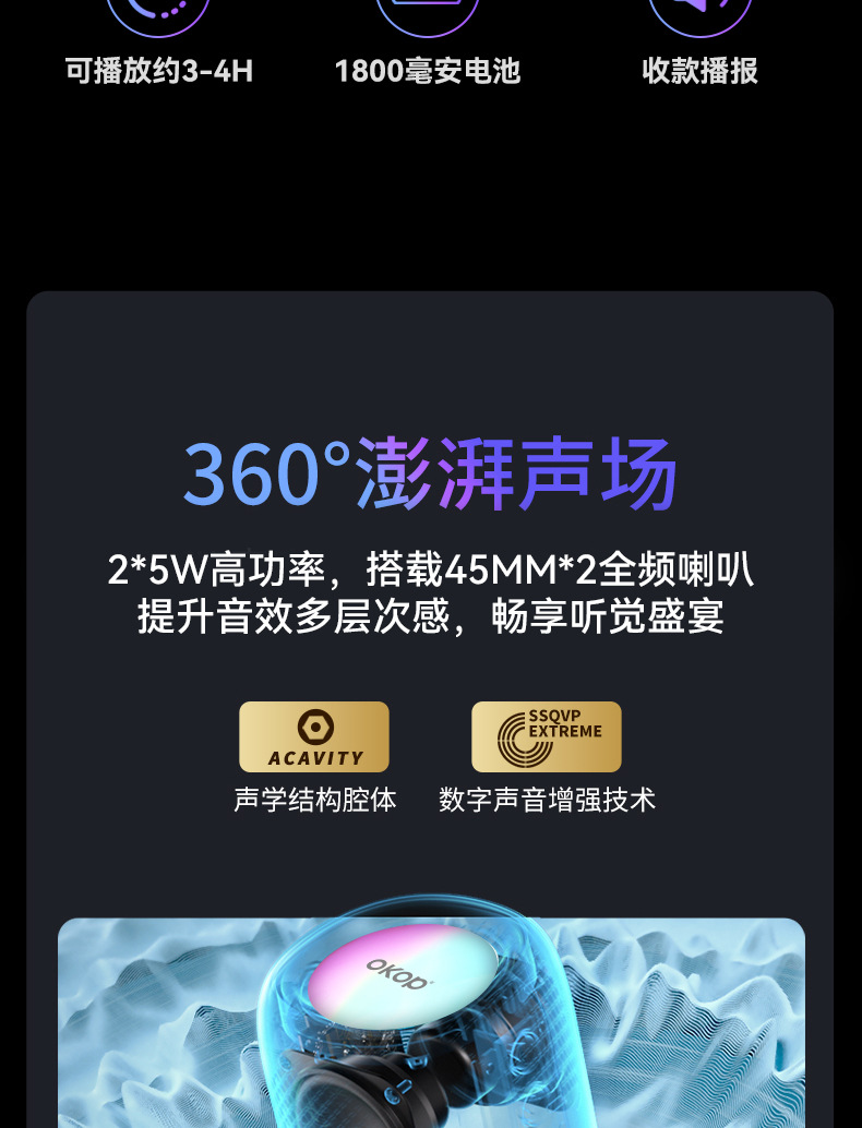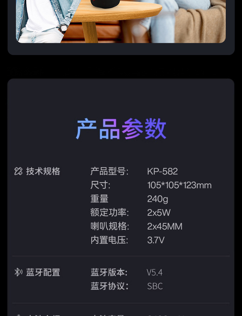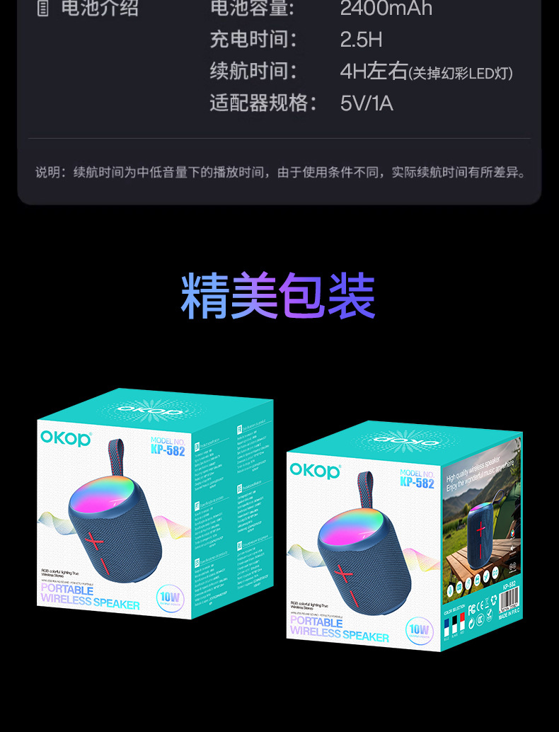 KP-582新款蓝牙音箱跨境户外防水重低音小钢炮RGB无线蓝牙音响