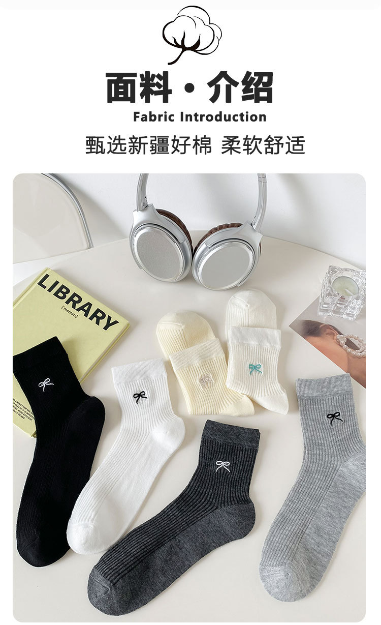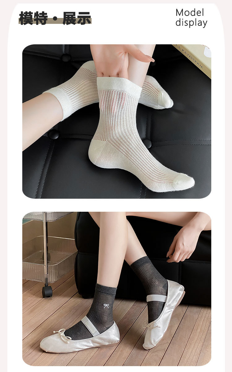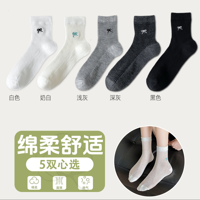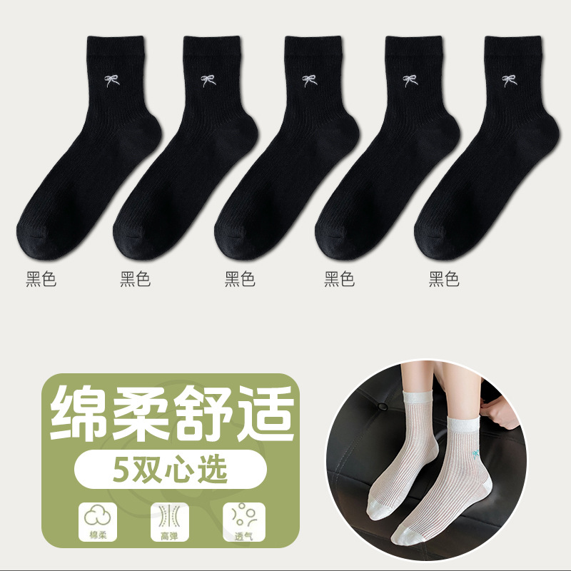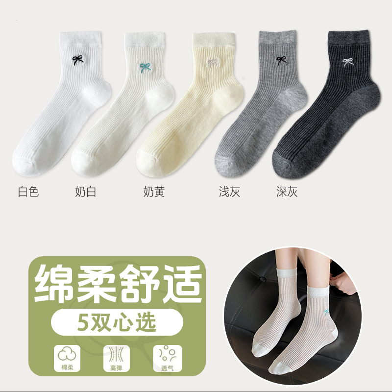 蝴蝶结袜子女中筒袜ins潮棉袜春夏季薄款网眼透气甜美芭蕾风短袜