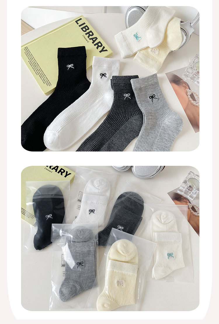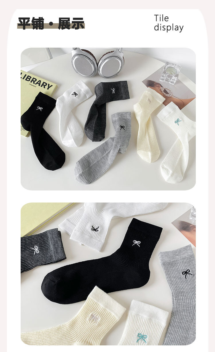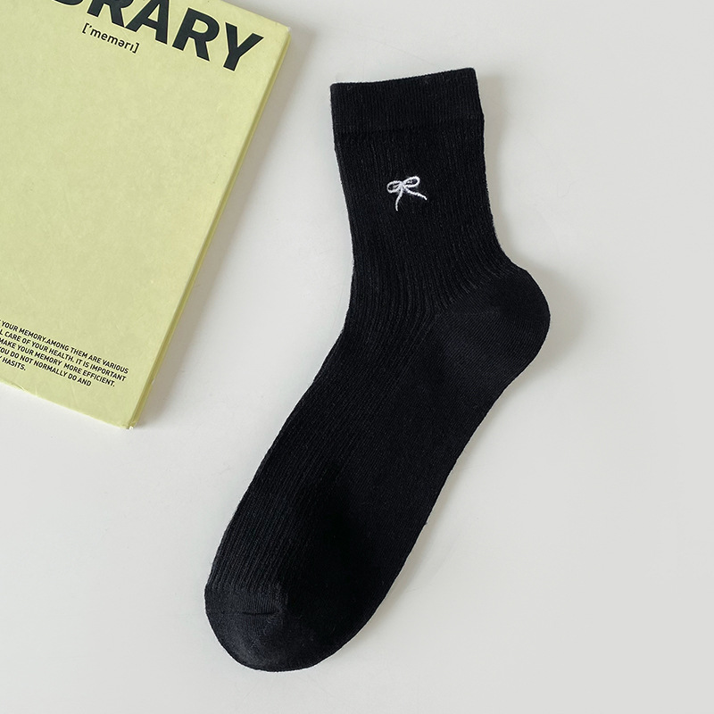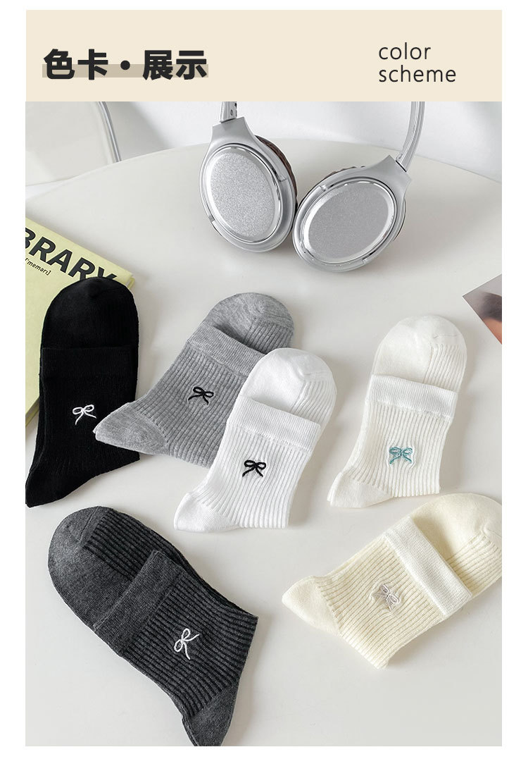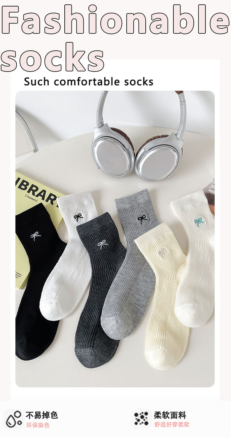 蝴蝶结袜子女中筒袜ins潮棉袜春夏季薄款网眼透气甜美芭蕾风短袜
