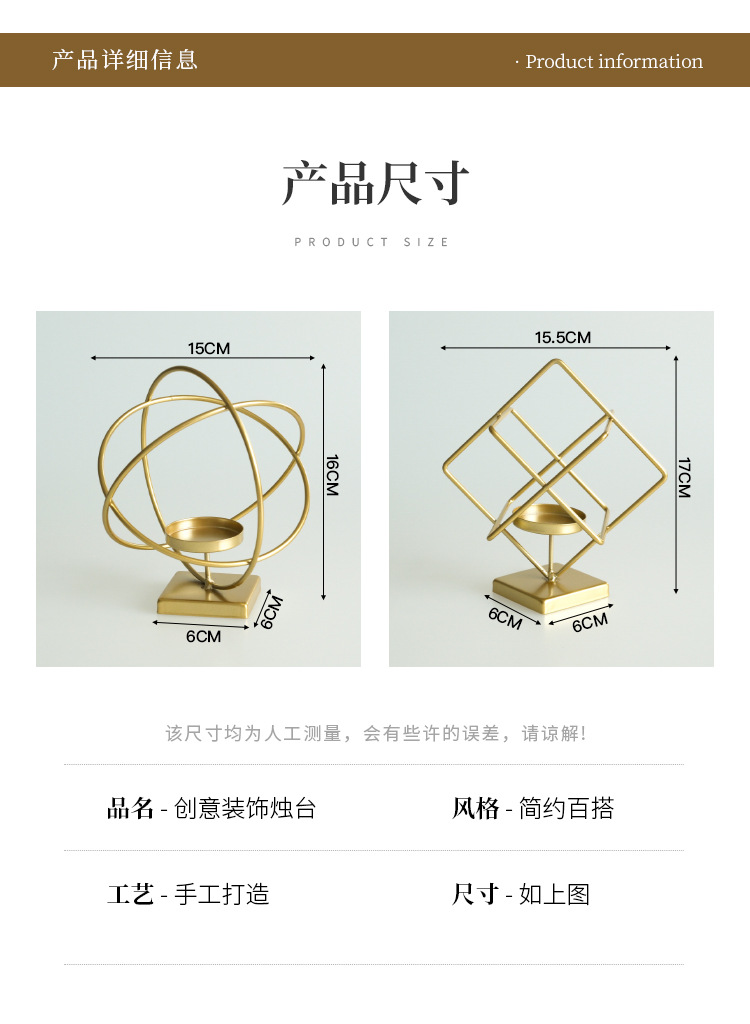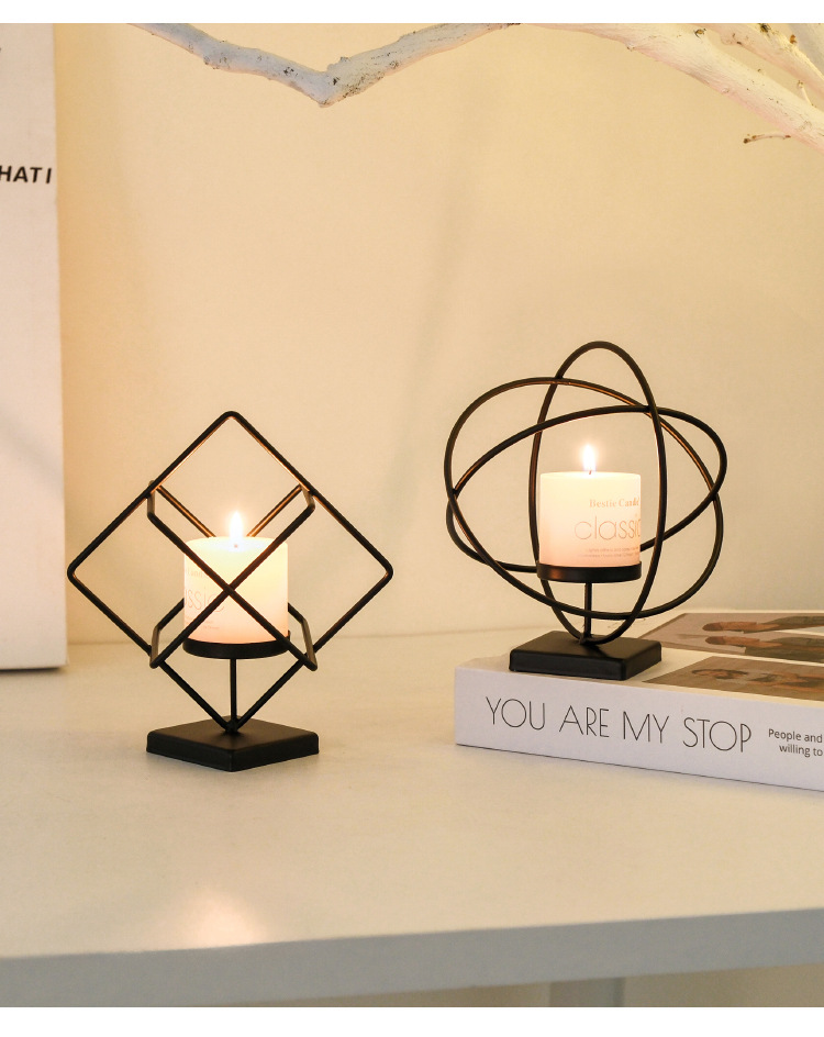北欧创意铁艺烛台摆件餐厅桌面氛围感装饰品餐桌浪漫烛光晚餐道具