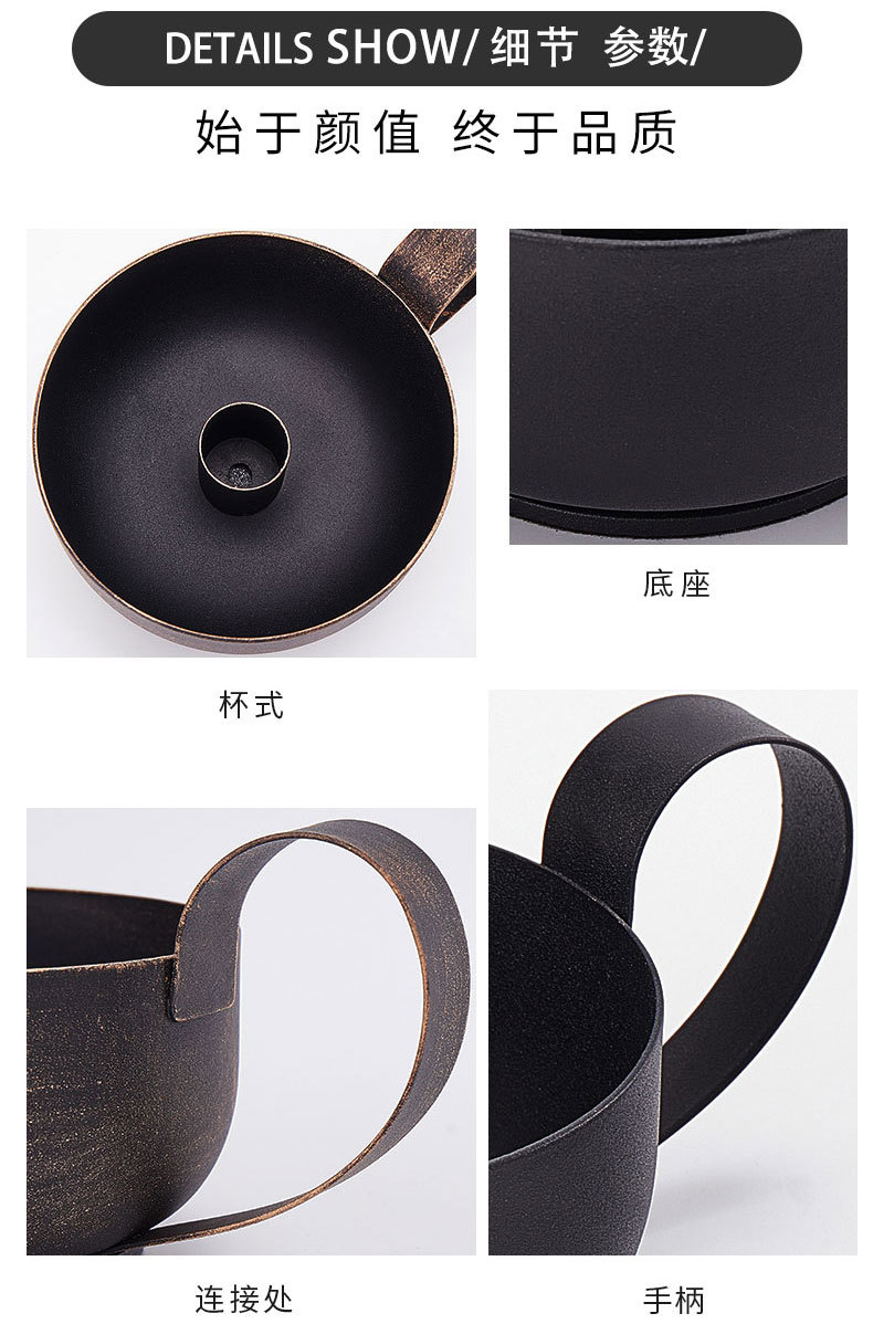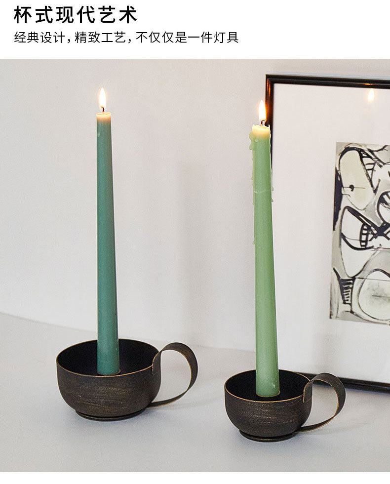 复古烛台烛光晚餐蜡烛杯空杯气氛装饰黑色铁艺烛台工艺品摆件厂家
