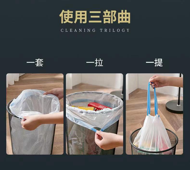 抽绳式垃圾袋家用厨房宿舍加厚耐用手提自动收口一次性垃圾袋
