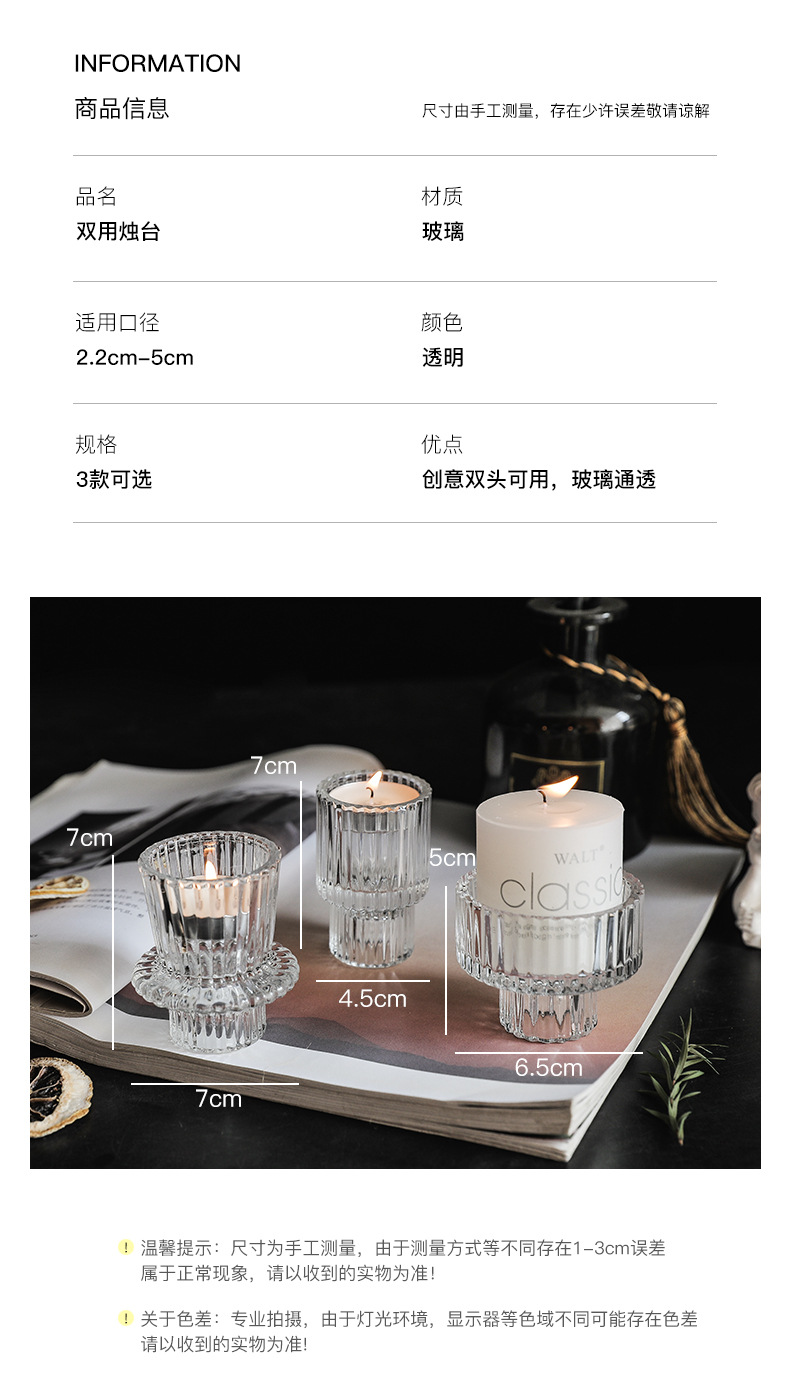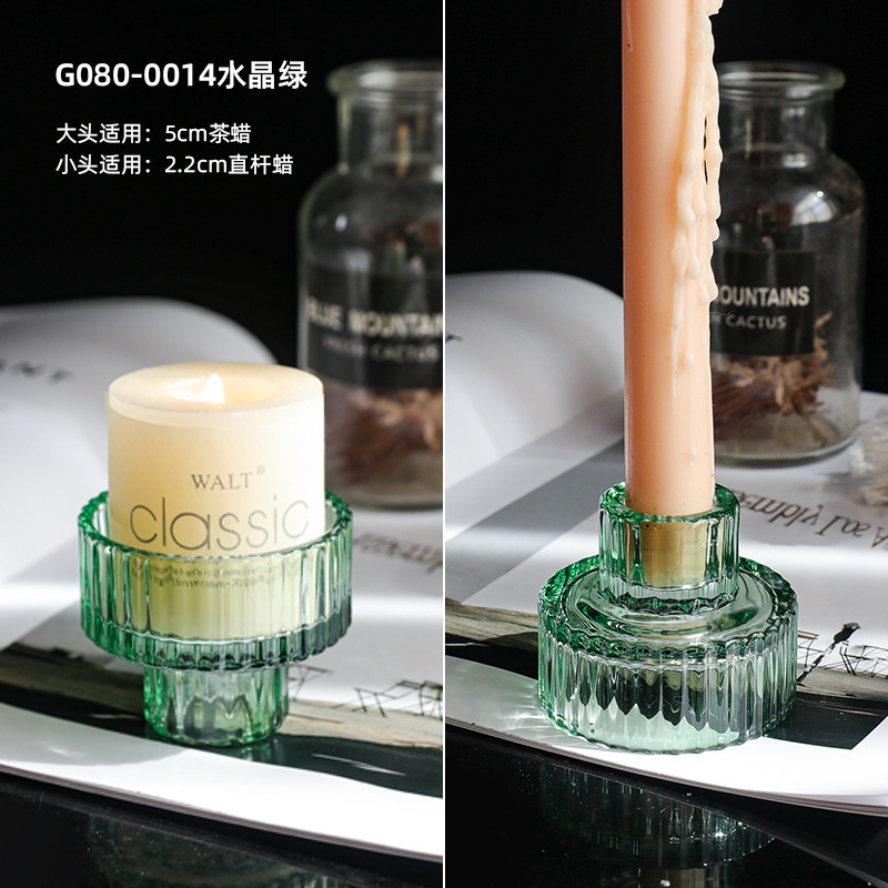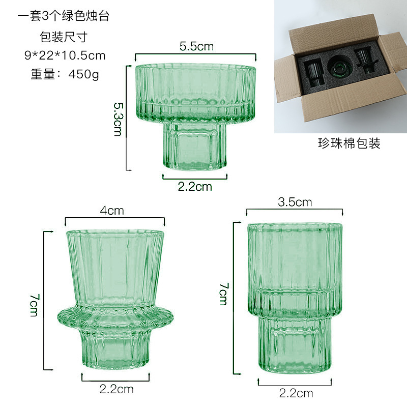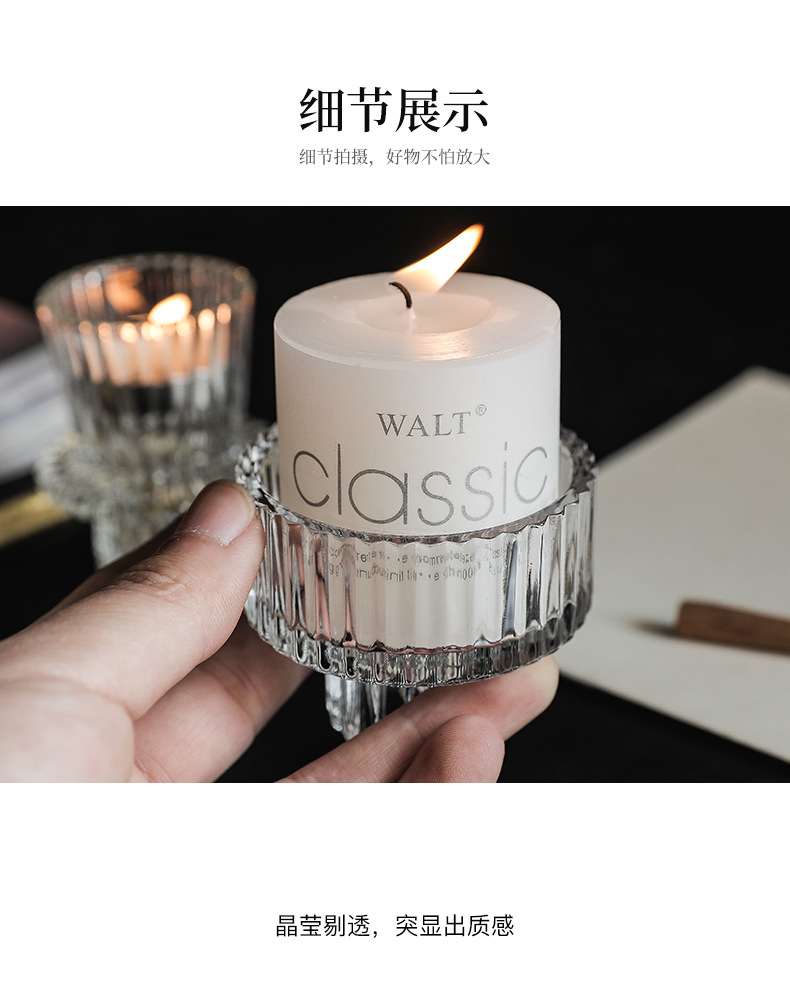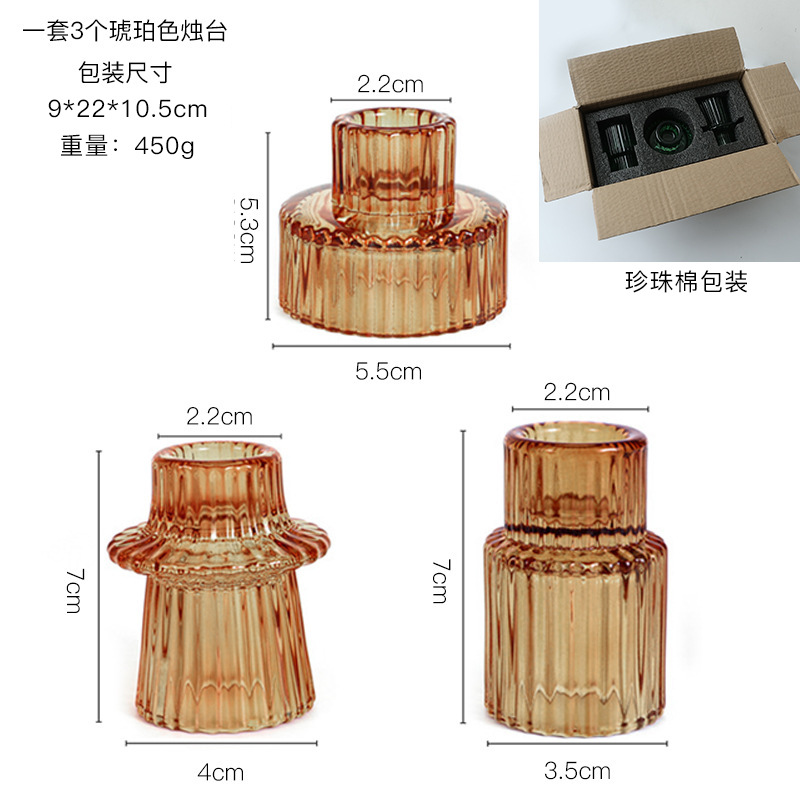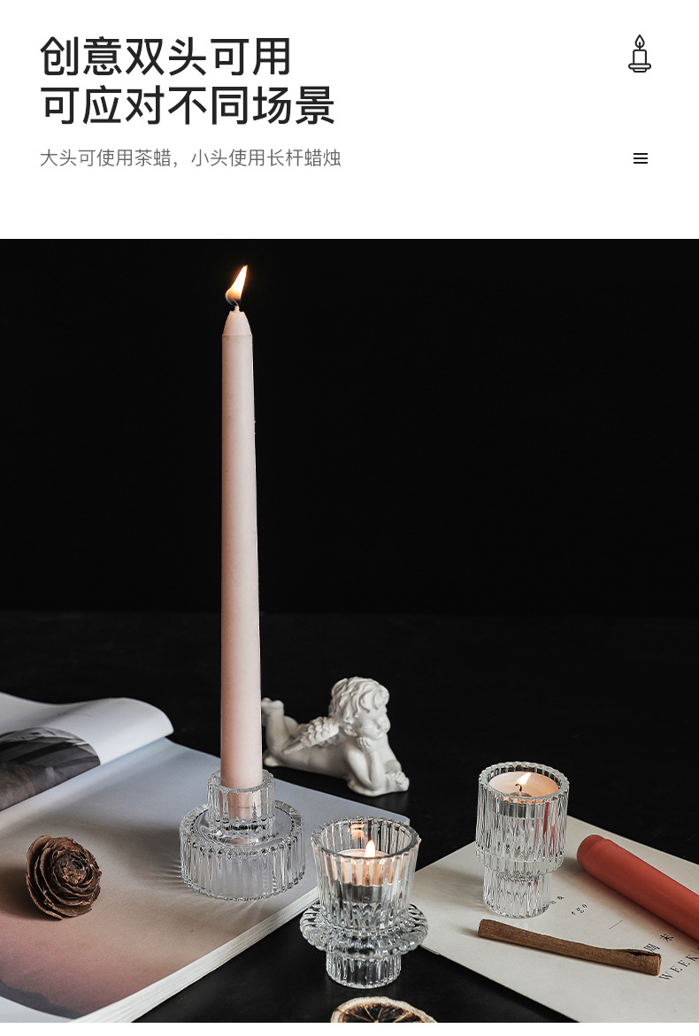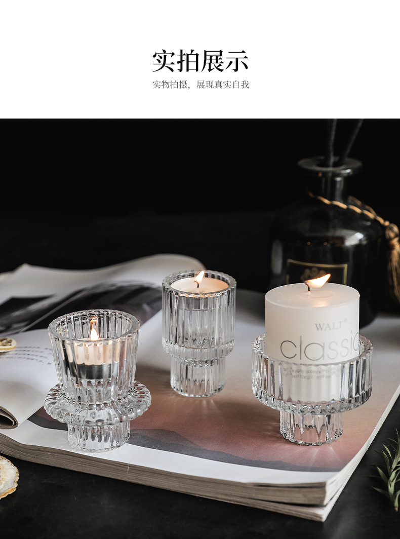 北欧竖条纹浮雕复古双头玻璃蜡烛台创意桌面浪漫餐厅桌面装饰摆件