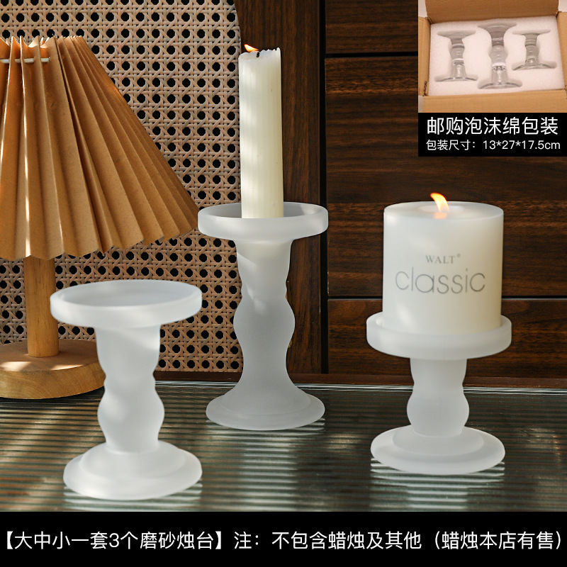 ins玻璃带金边罗马柱烛台法式摆件装饰品浪漫烛光晚餐桌软装饰品