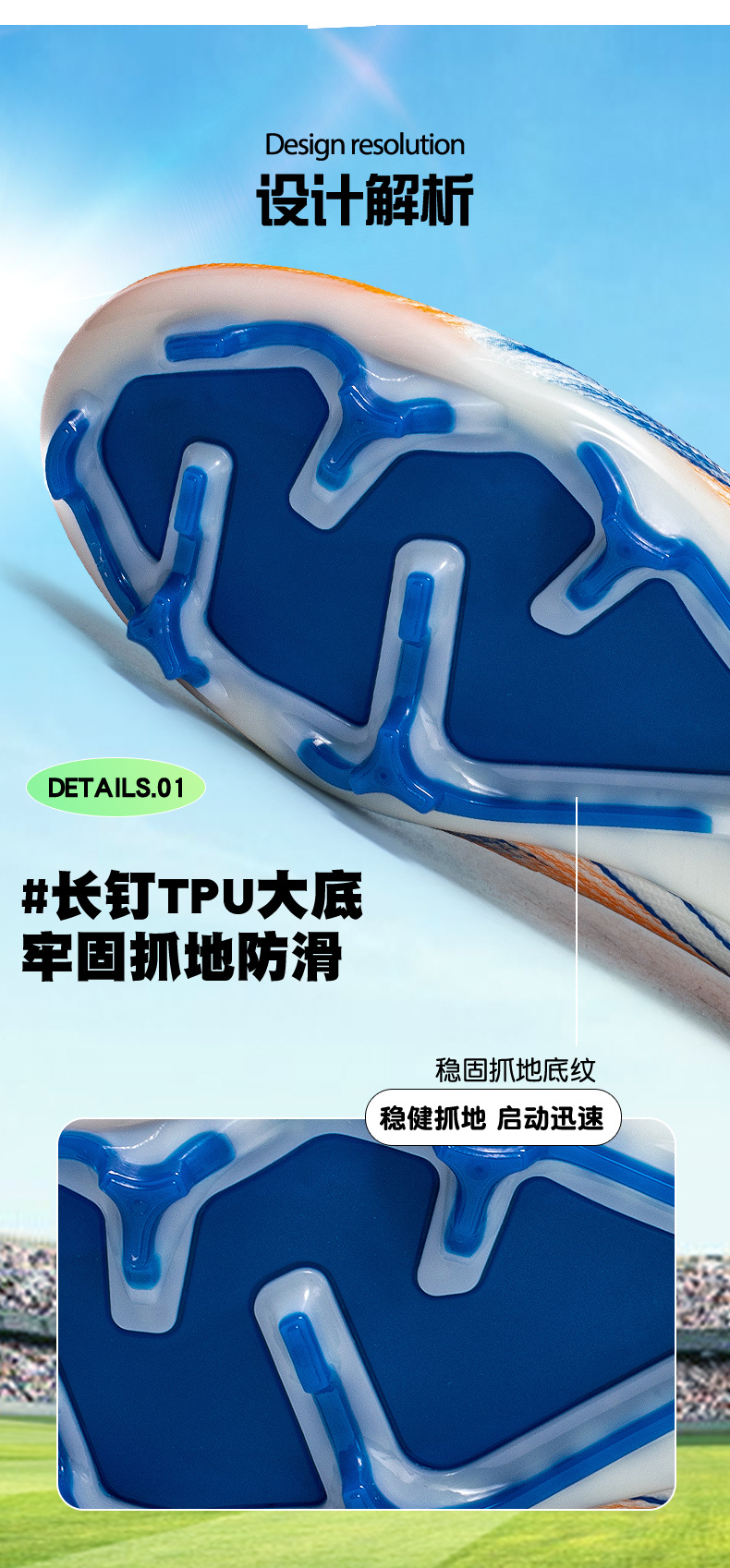 跨境无缝新款高端足球鞋男低帮学生比赛训练AG长钉碎钉运动足球鞋
