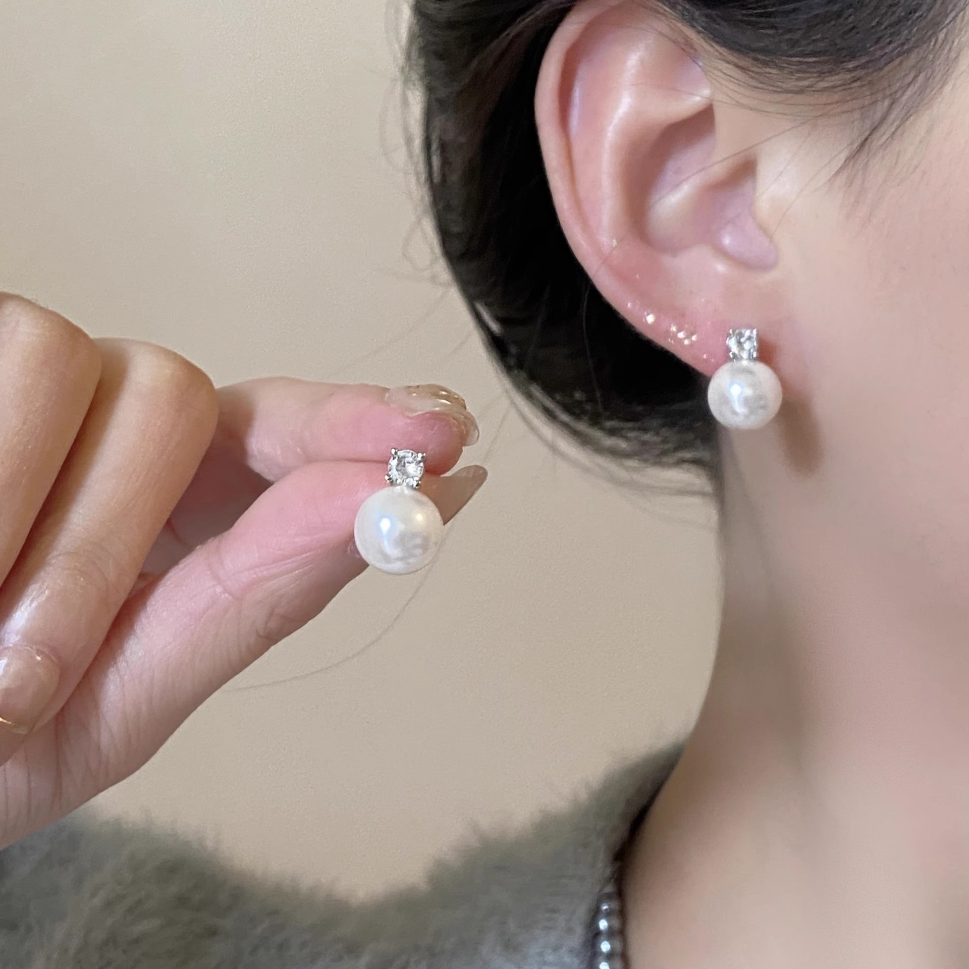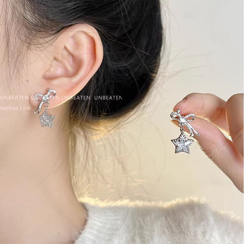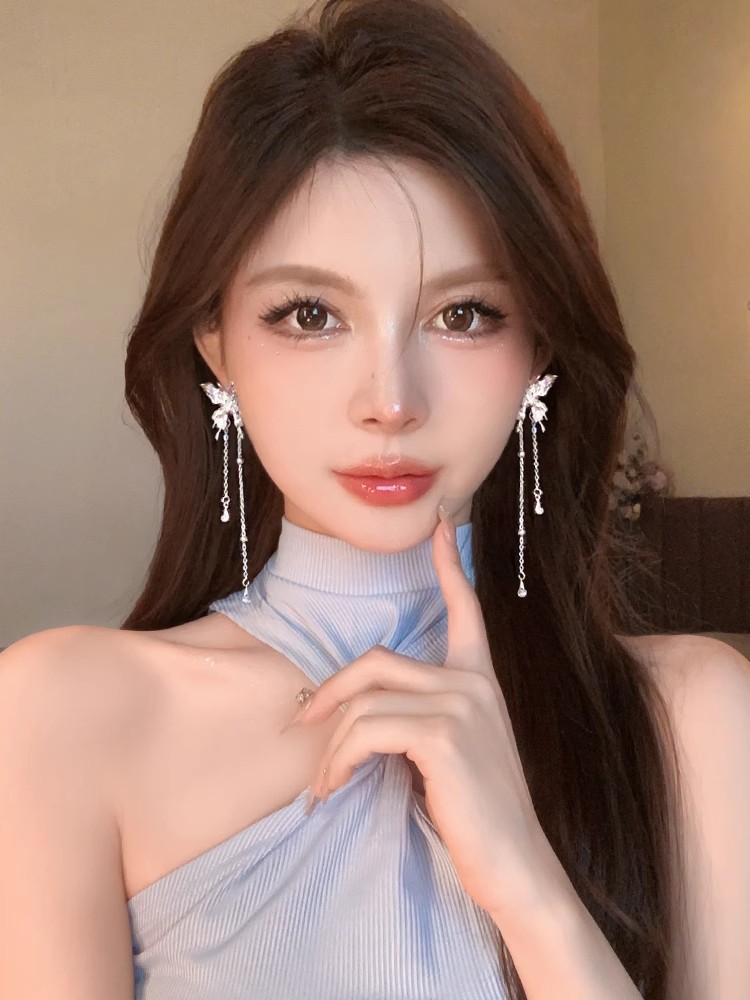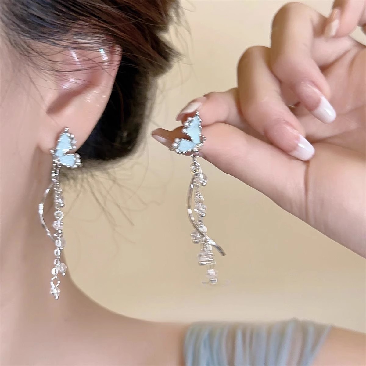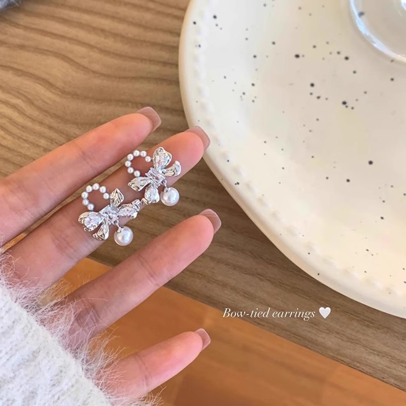 925银针蝴蝶锆石珍珠耳钉女时尚感耳环小众独特耳饰品批发