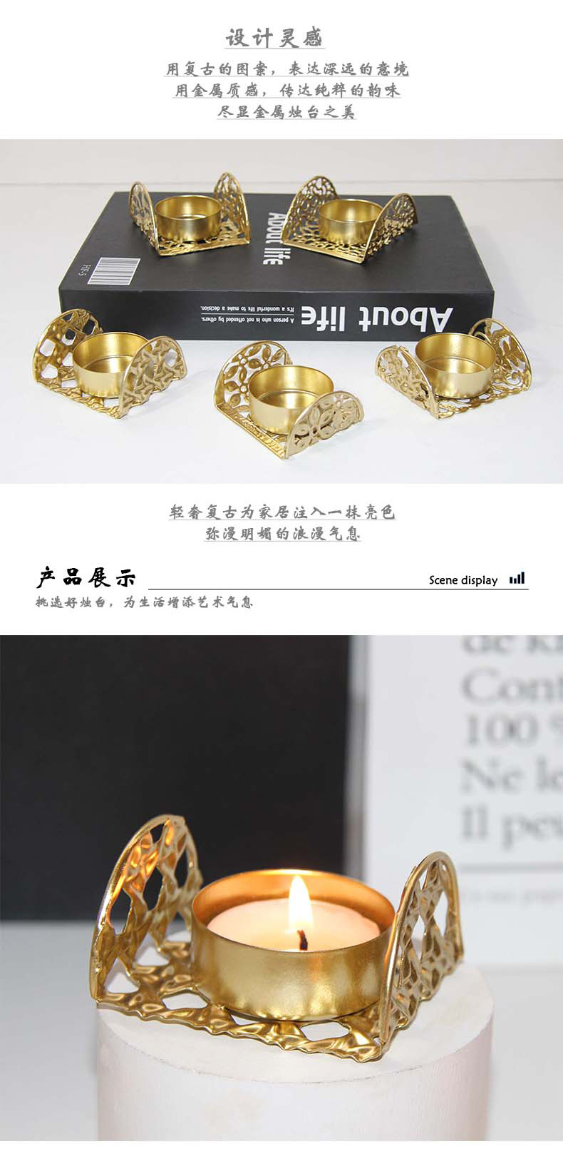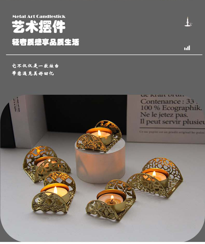 外贸精选金属镂空烛台创意精致桌面铁艺摆件卧室厨房浪漫氛围装饰