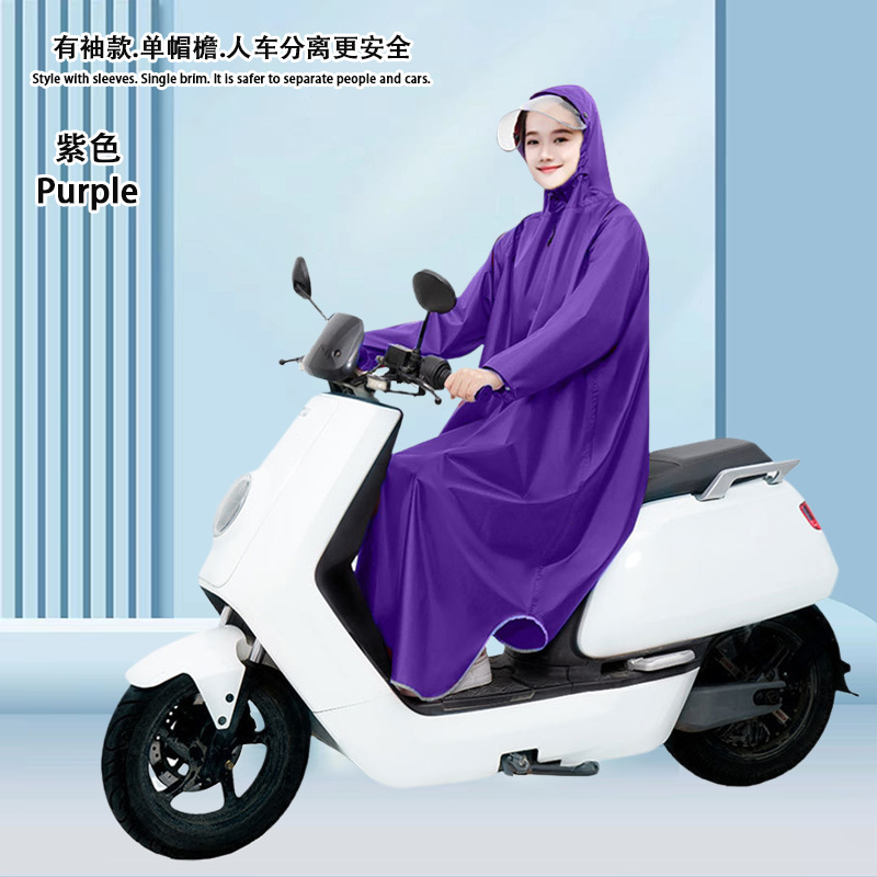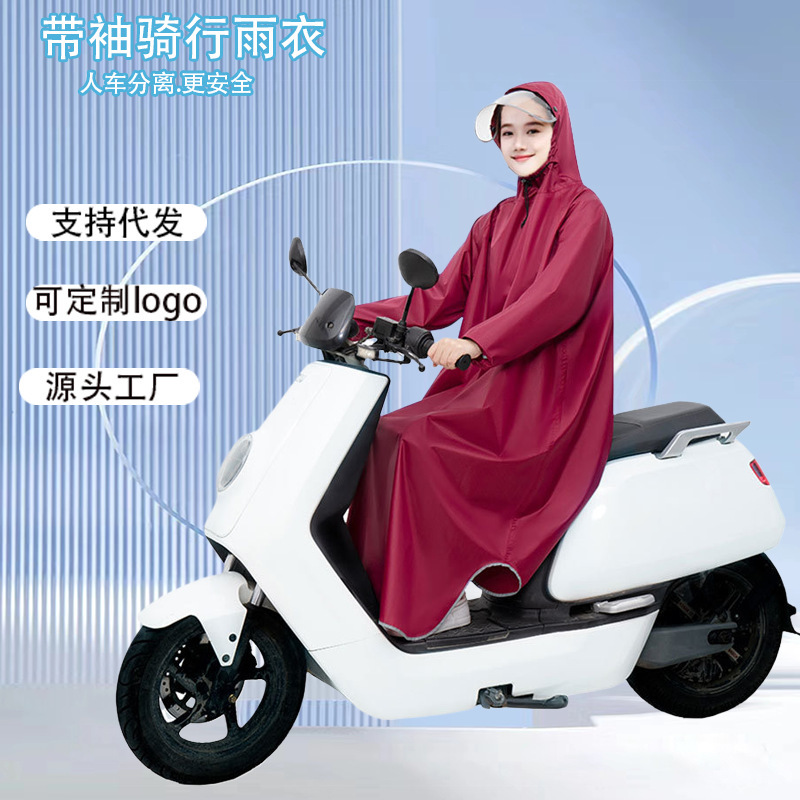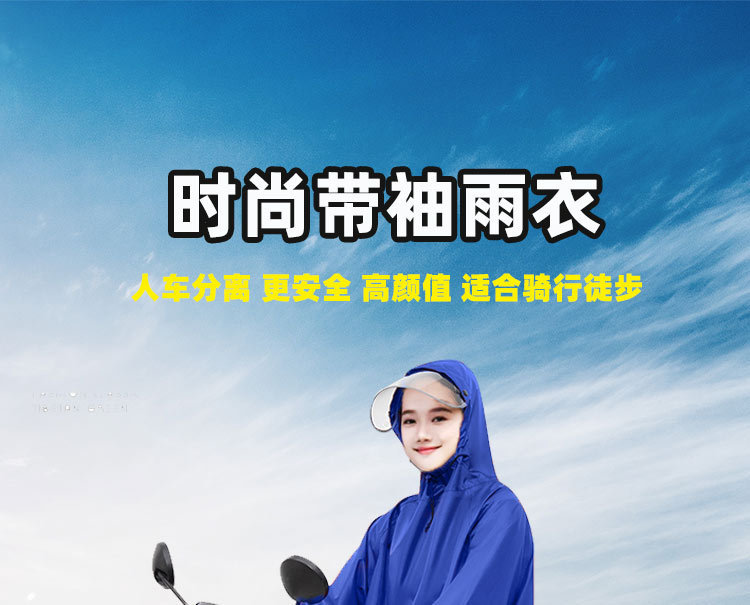 带袖电瓶车雨衣自行车雨披大帽檐男女单双人骑行电动车雨衣防暴雨