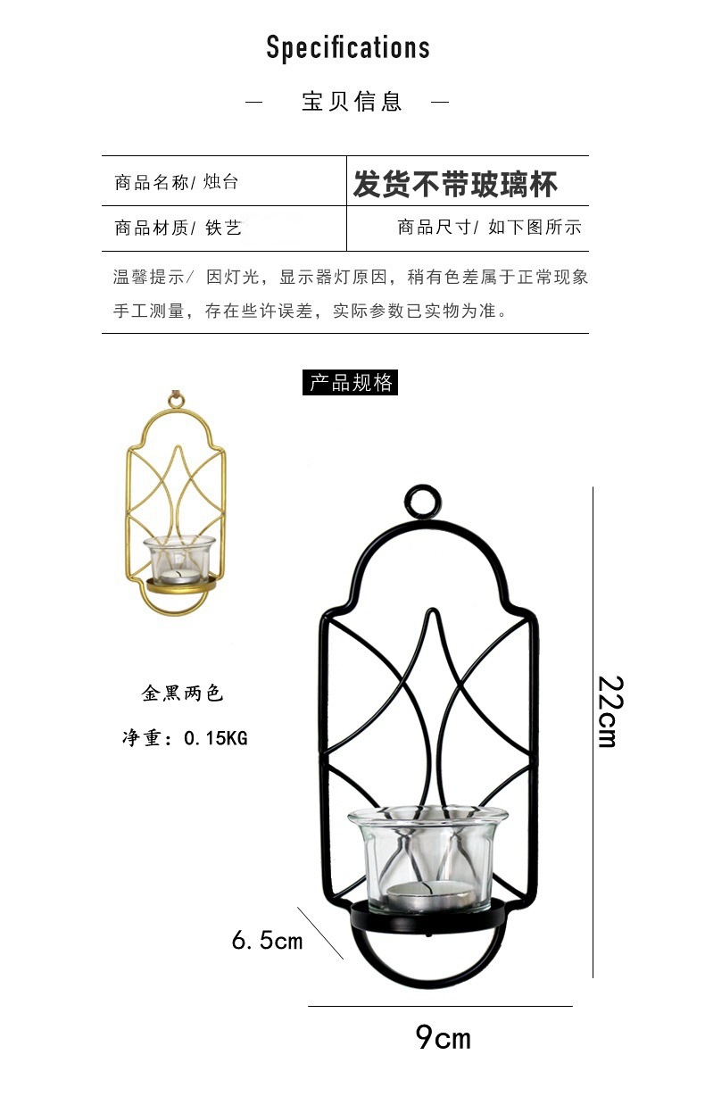跨境北欧金色壁挂铁艺烛台蜡烛托盘简约墙面装饰几何挂件一件代发