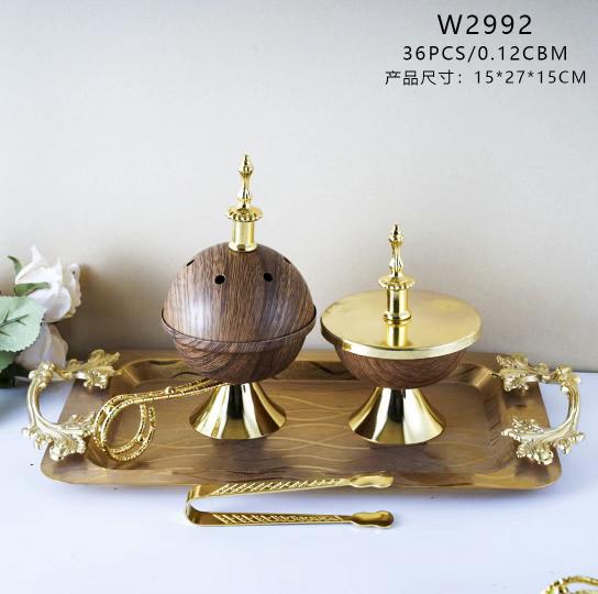 非洲中东东南亚迪拜阿拉伯花朵碳香炉木质金属香薰炉Incense burn