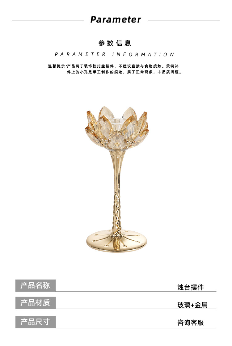 跨境莲花烛台浪漫烛光晚餐道具水晶玻璃小蜡烛台西餐厅烛台批发