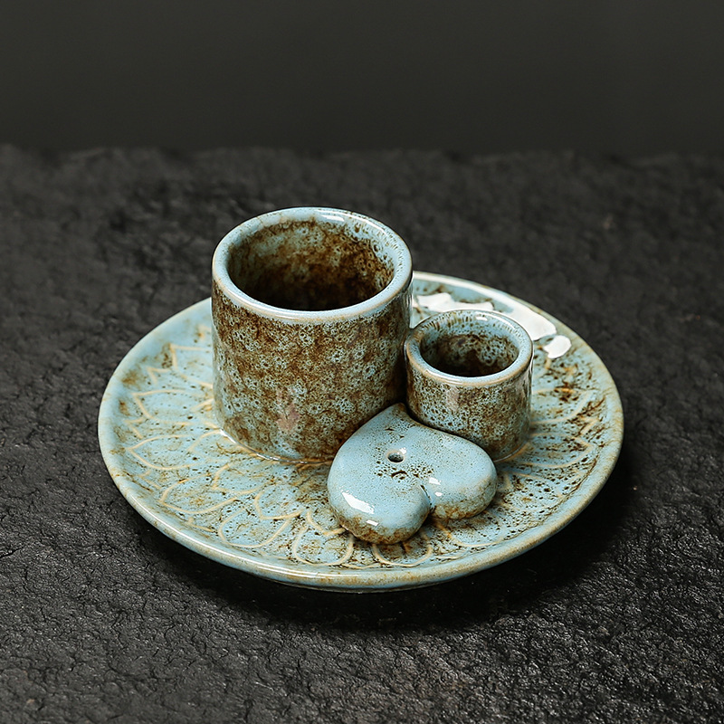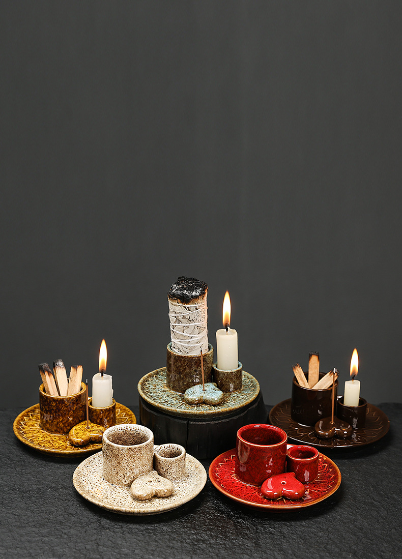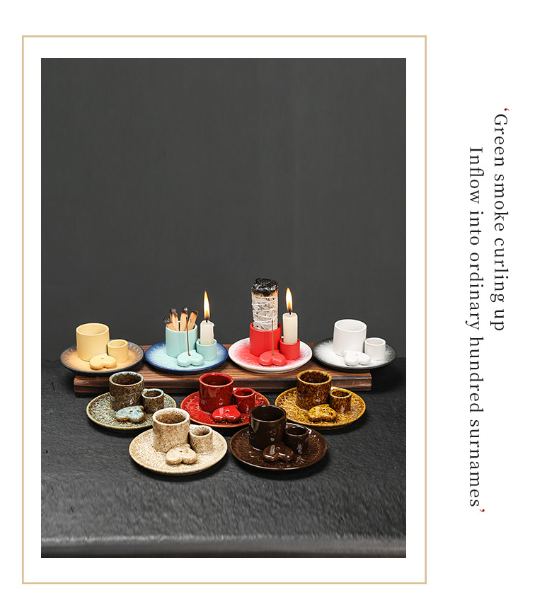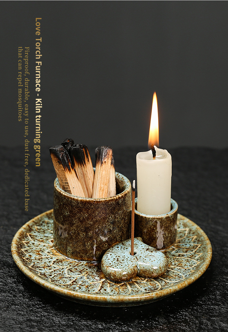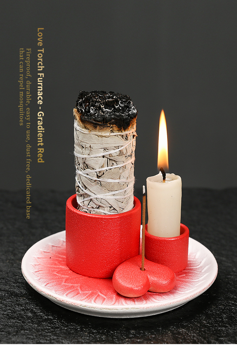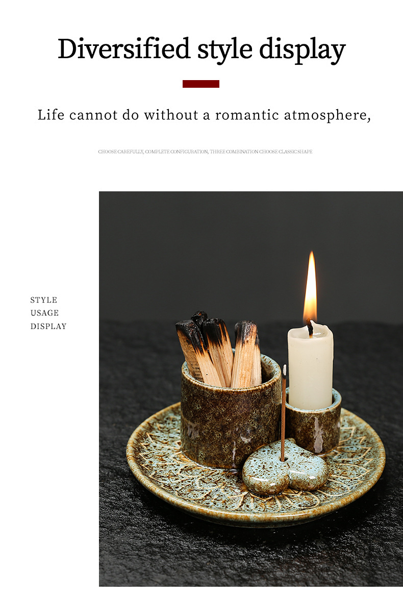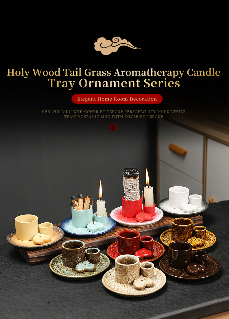 跨境 莫兰迪色系烛台北欧风格家居氛围装饰品鼠尾草摆件圣木托盘
