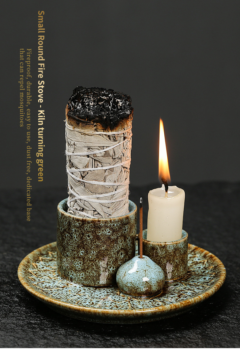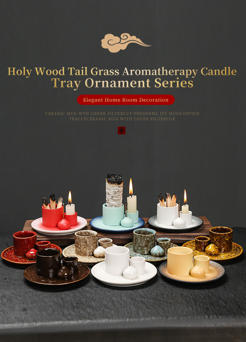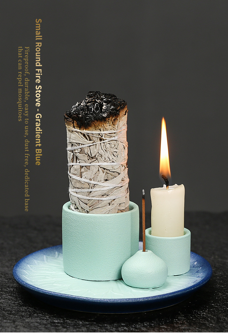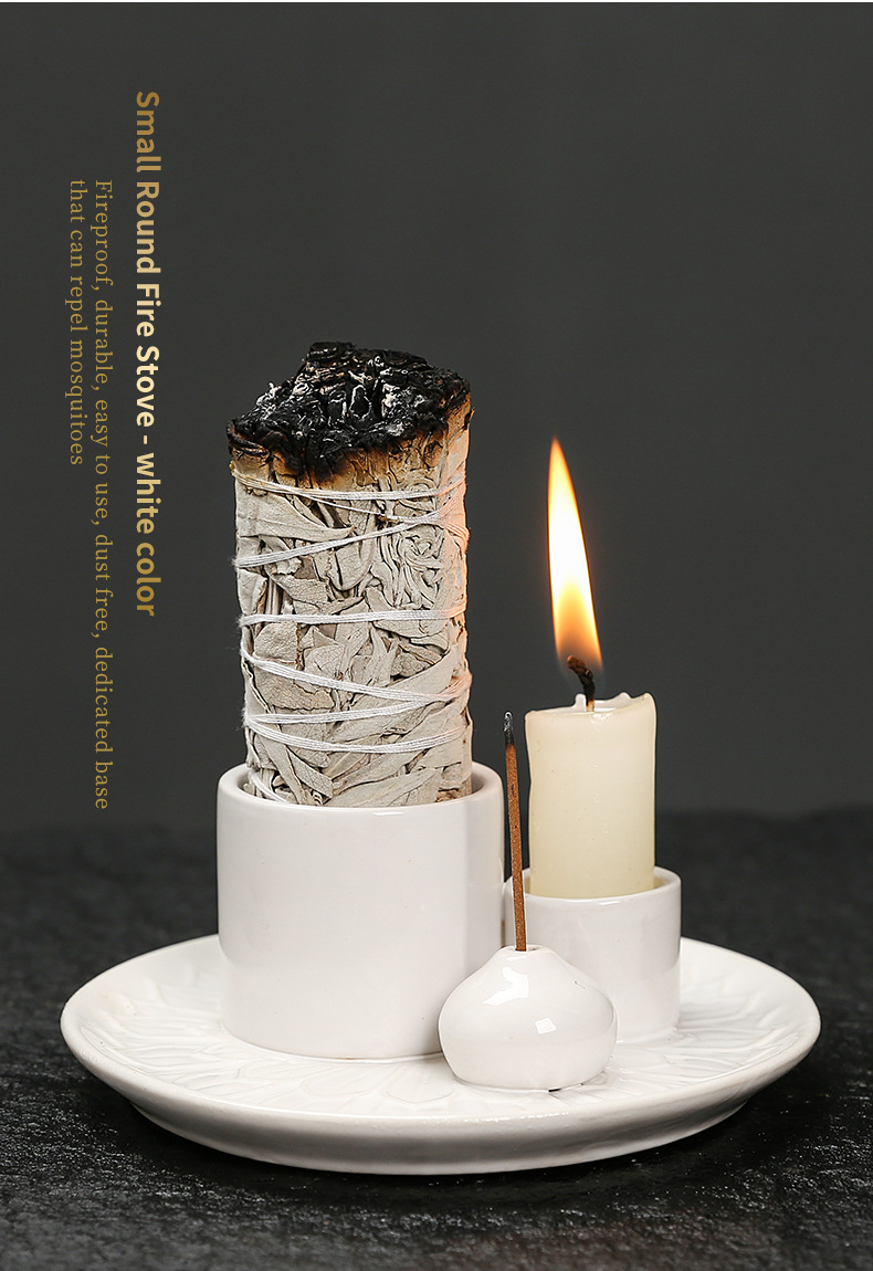 圣木鼠尾草器香托盘ins风 创意简约香薰炉客厅陶瓷美式装饰品香插