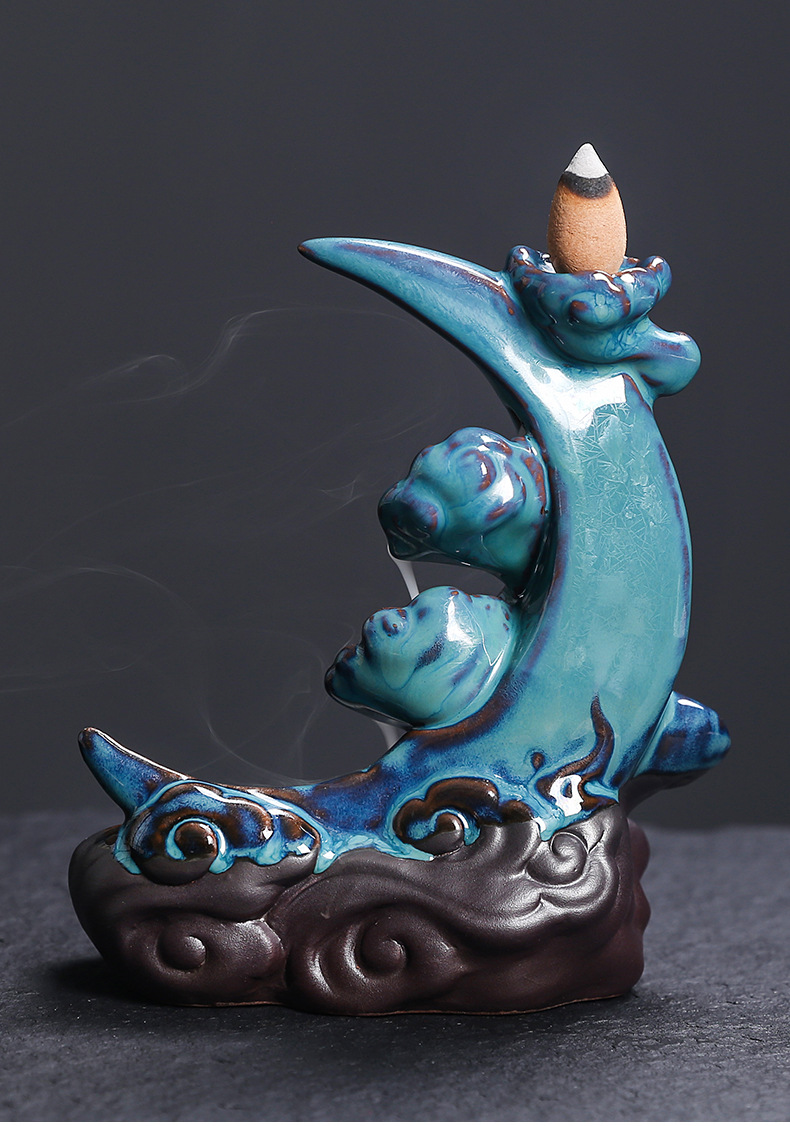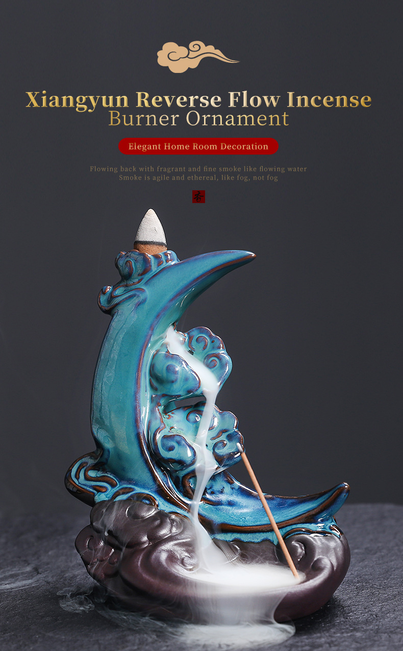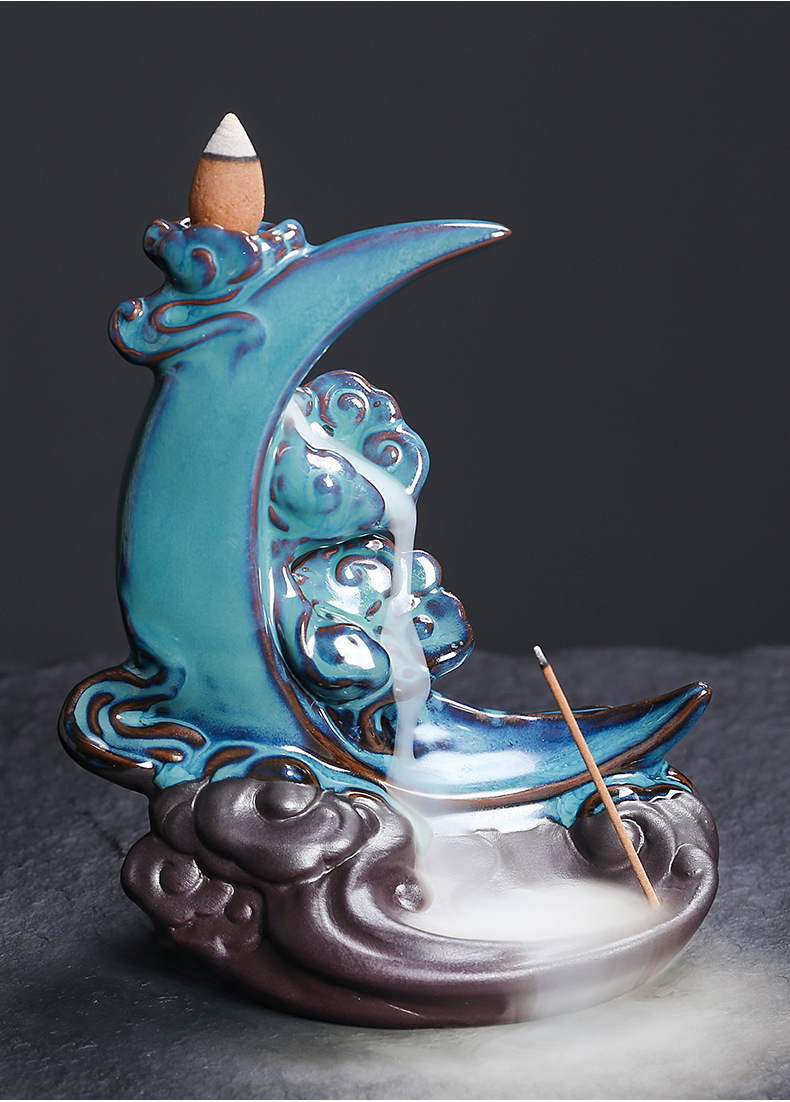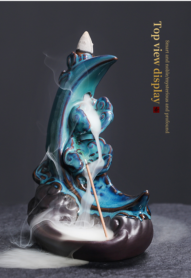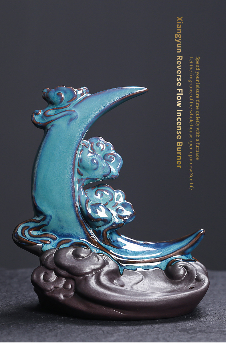 跨境陶瓷家用室内香薰炉禅意摆件创意月亮倒流香炉工艺品家居装饰