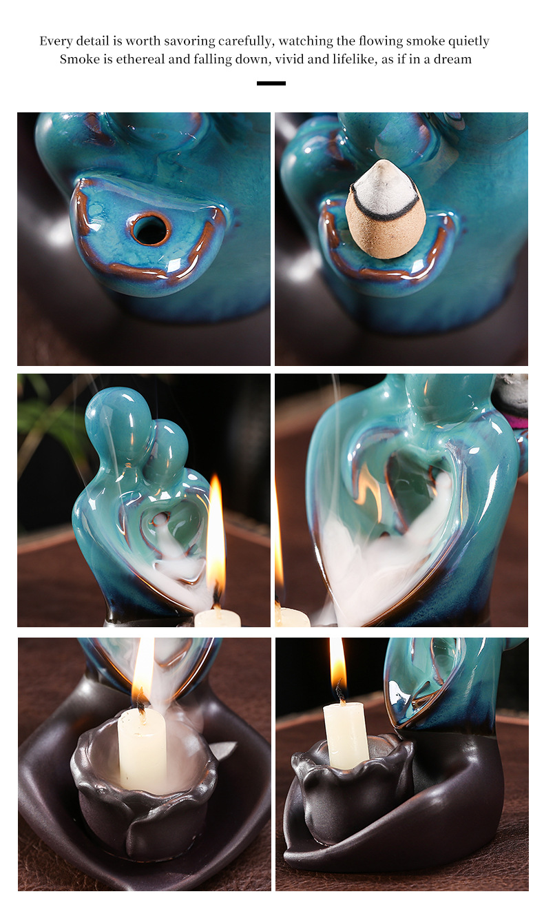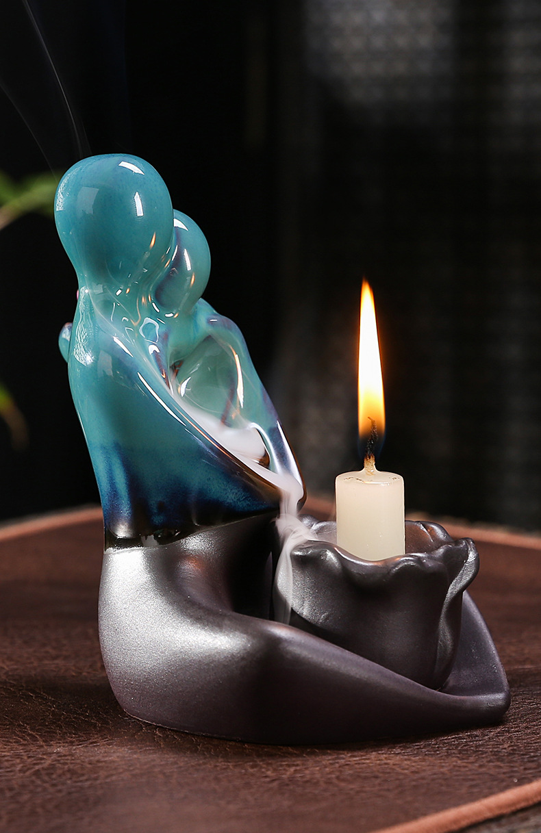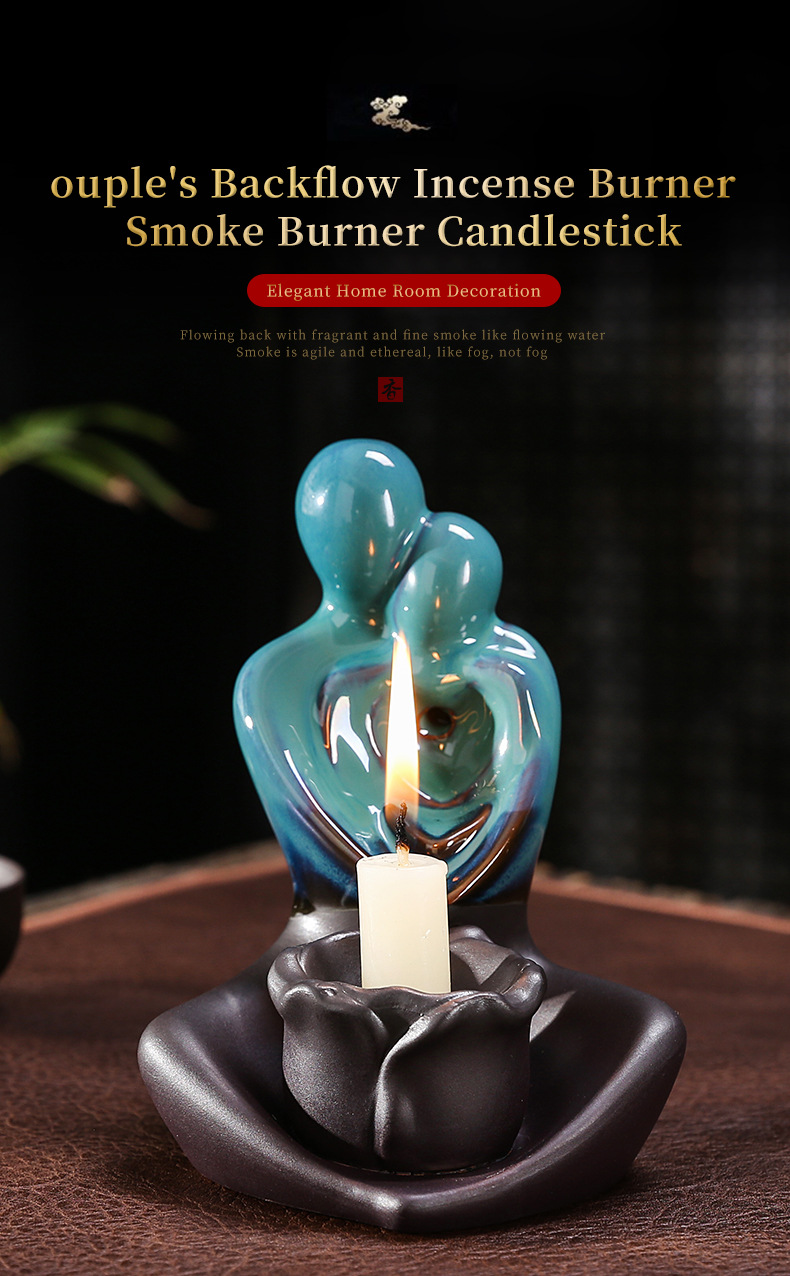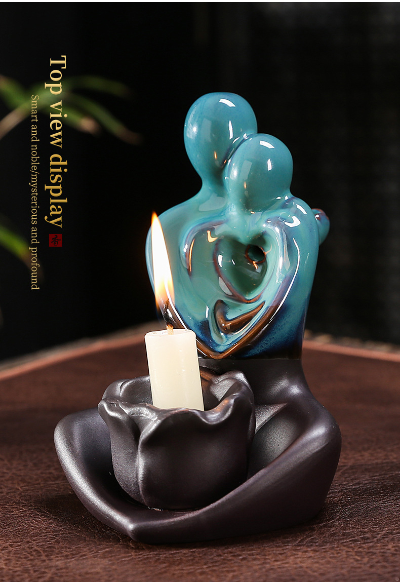 跨境陶瓷倒流香薰炉烛台多功能双用工艺品摆件创意欧美情侣香薰炉