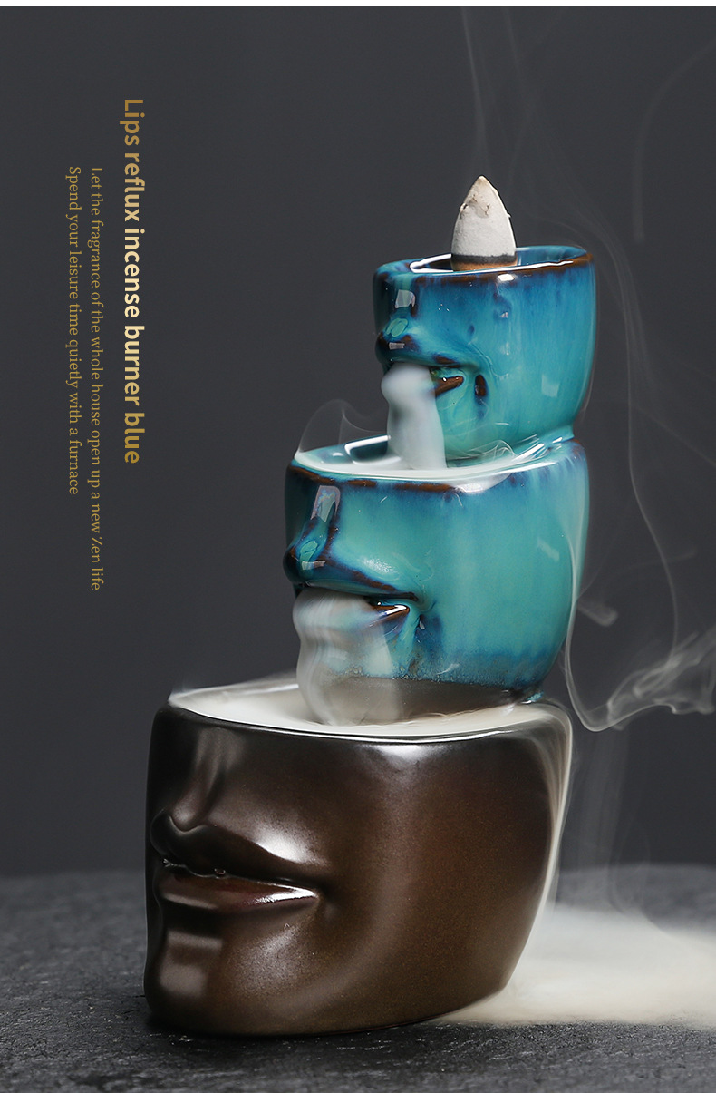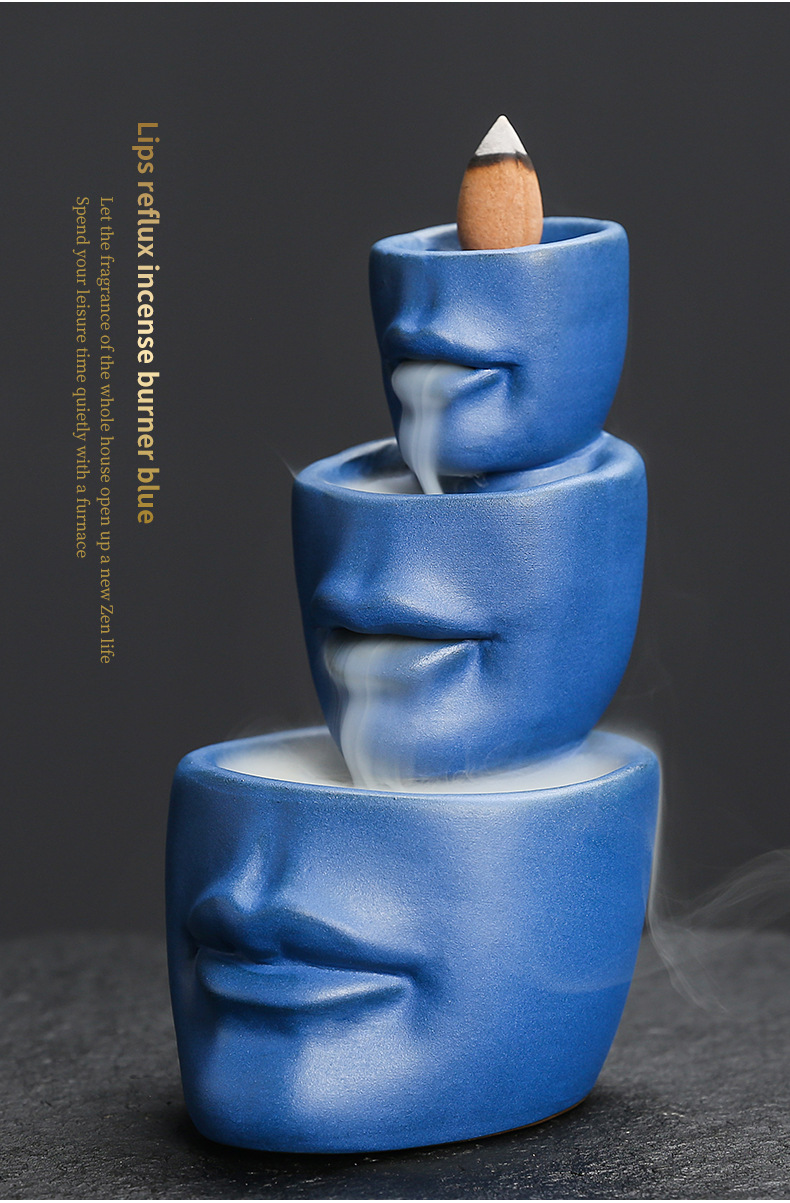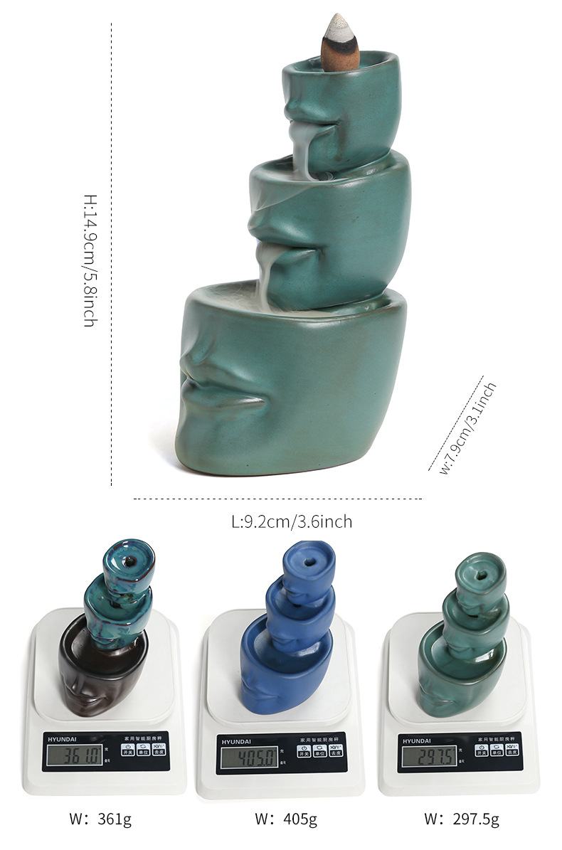 跨境陶瓷香炉室内家居摆件 创意欧式人脸倒流香炉家居装饰工艺品