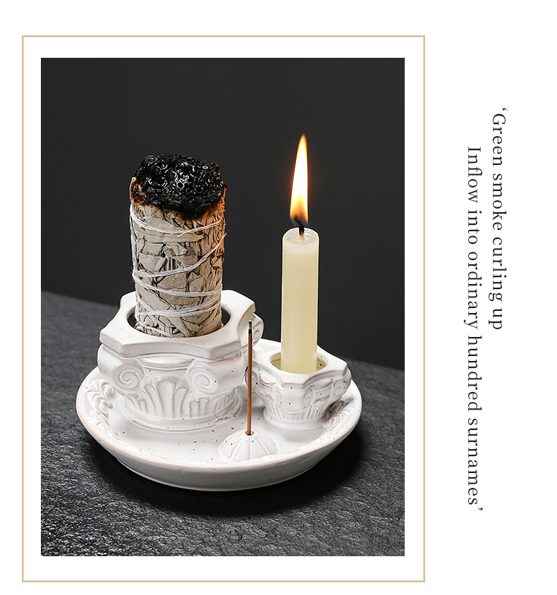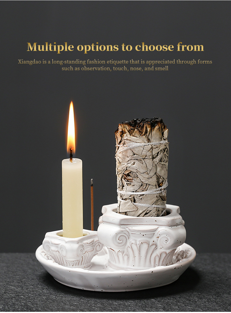跨境陶瓷罗马柱烛台鼠尾草秘鲁圣木托盘北欧风格蜡台套装氛围摆件