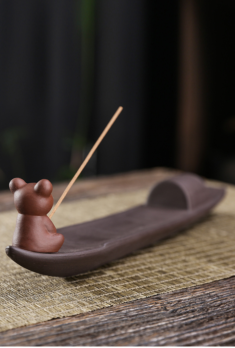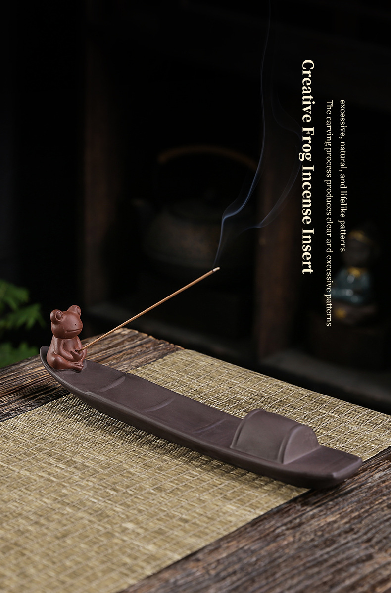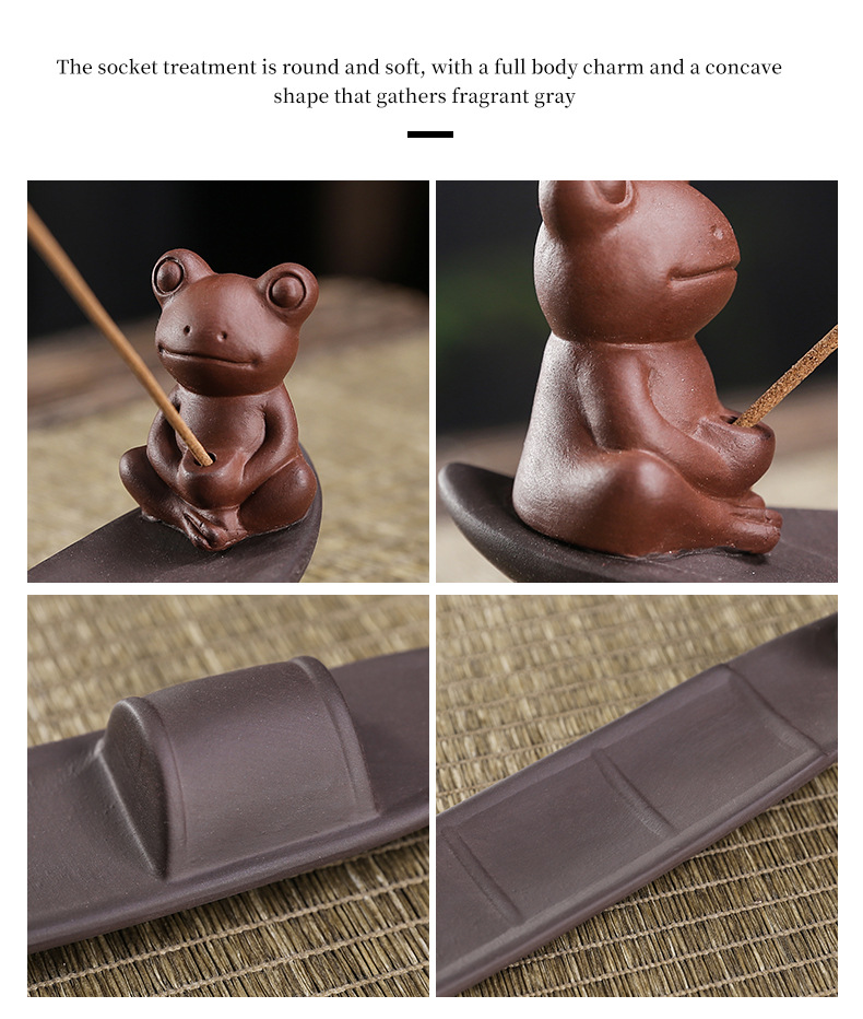 跨境紫砂卧香炉香座 创意欧美青蛙乌沉香檀香香薰底座线香炉香插