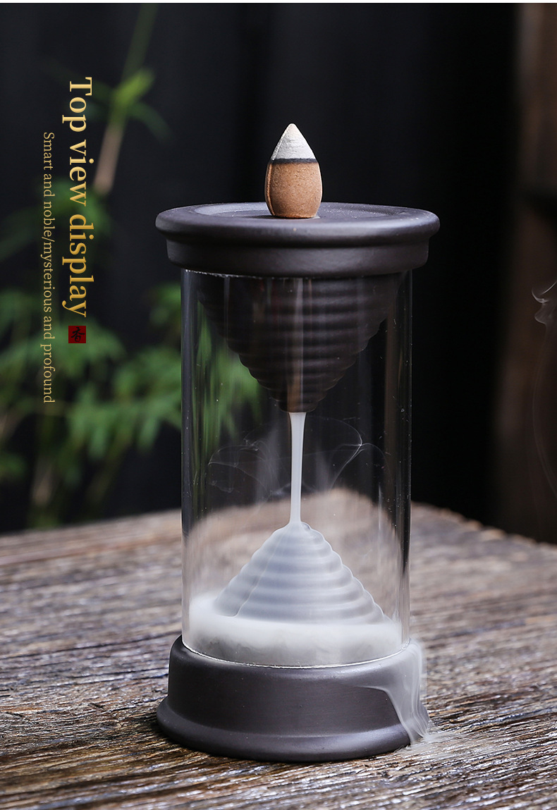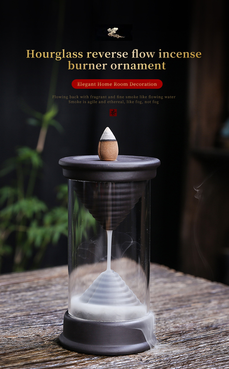 跨境紫砂回流香薰炉摆件创意小号防风罩小沙漏瀑布回流香炉工艺品