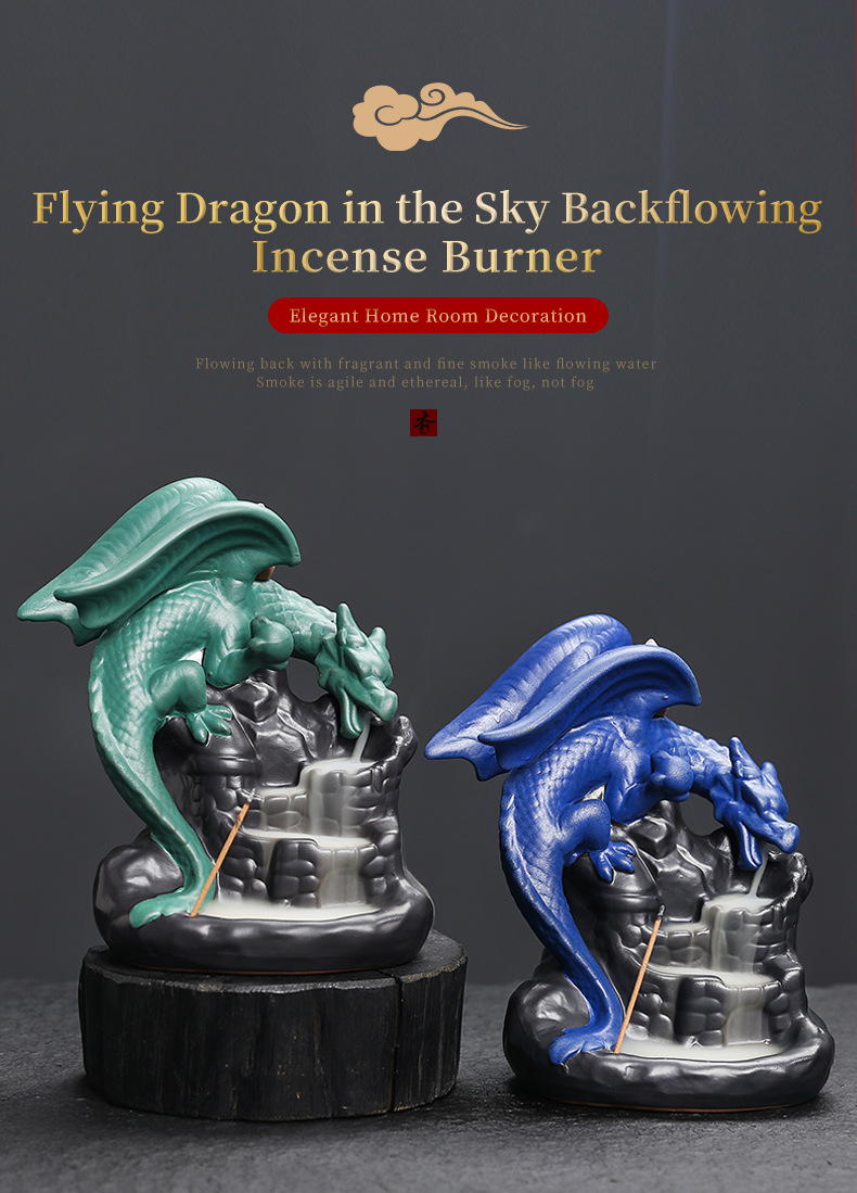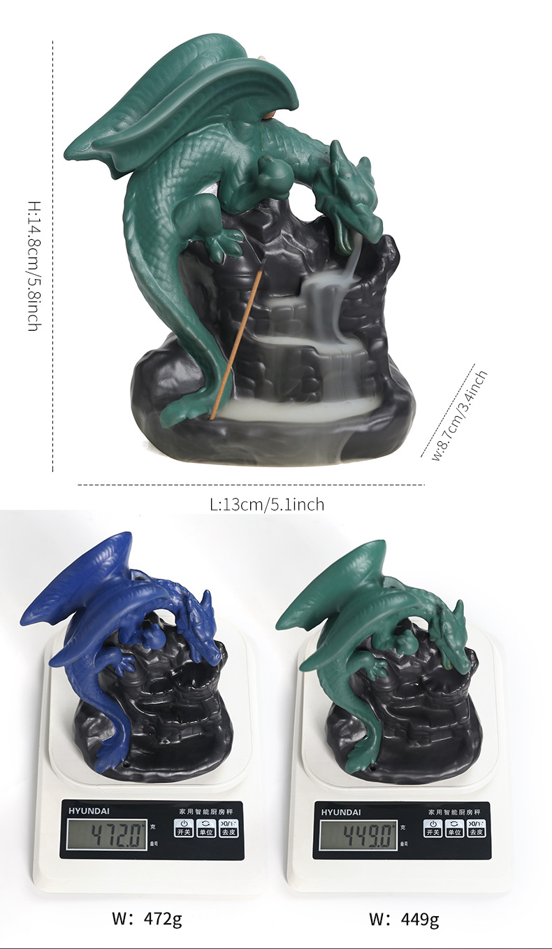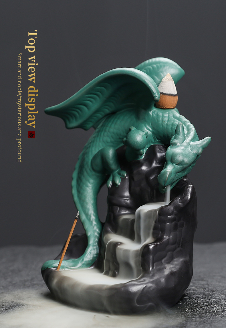 跨境陶瓷倒流香薰炉亚马逊工艺品摆件 创意欧美翼龙檀香倒流香炉