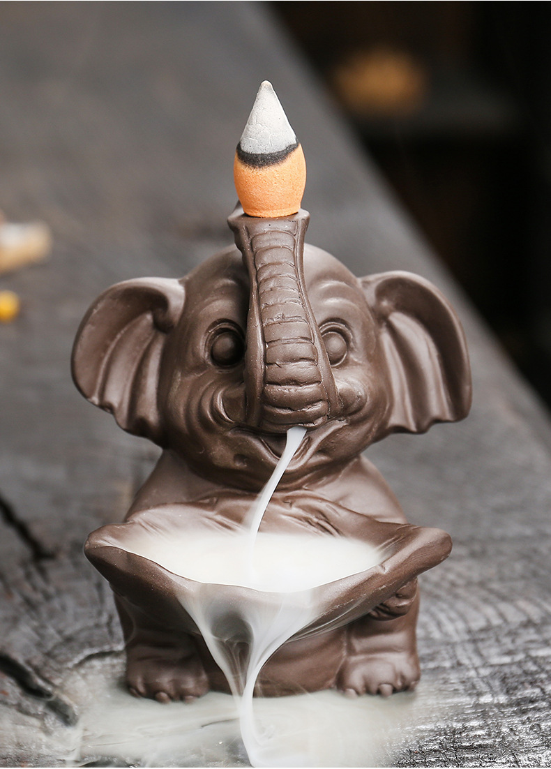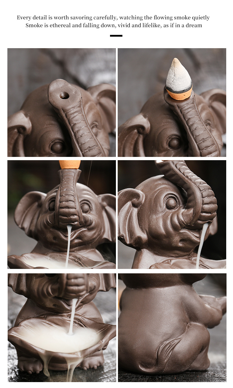 跨境紫砂倒流香炉小象烟回流炉创意东南亚欧美摆件倒流香炉工艺品