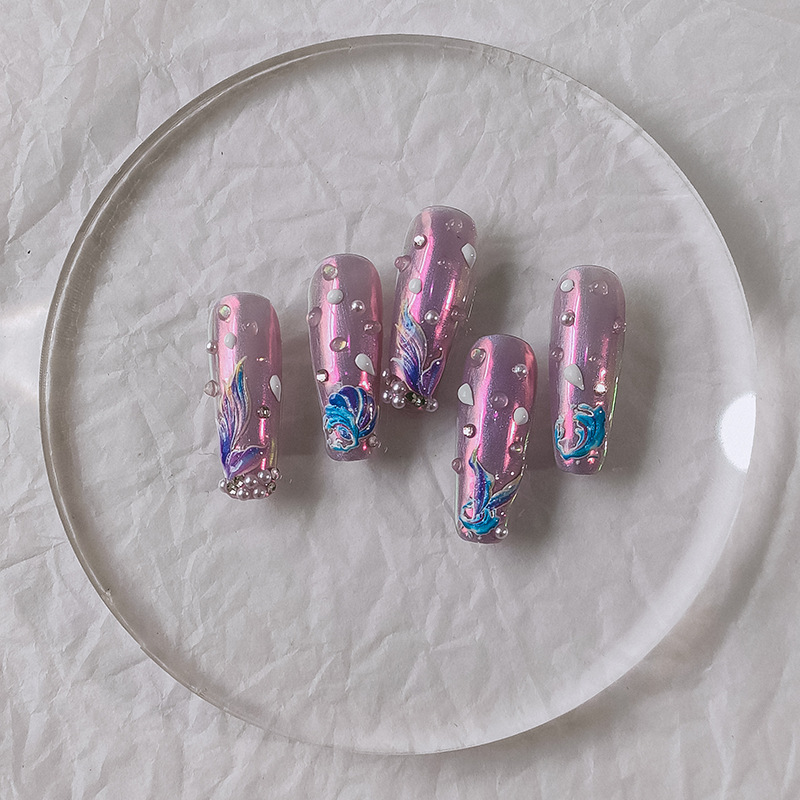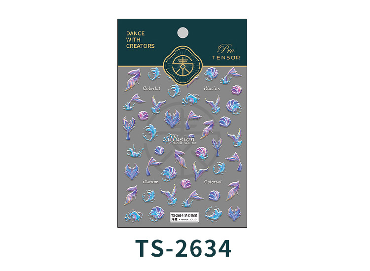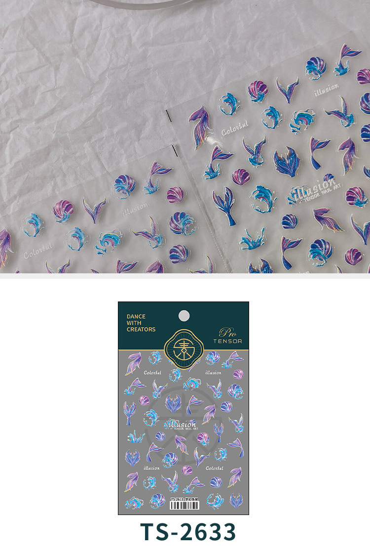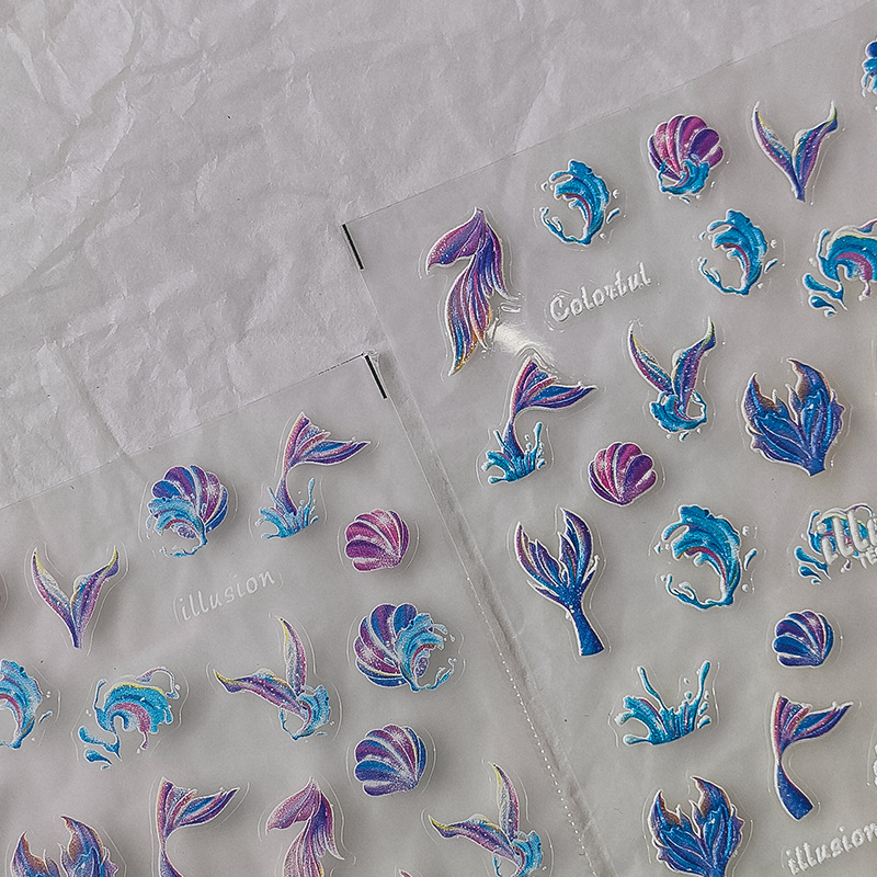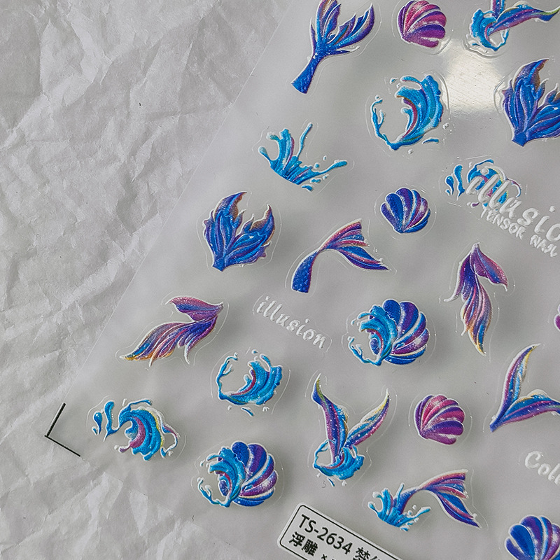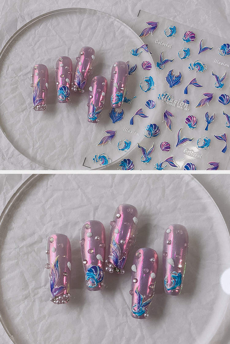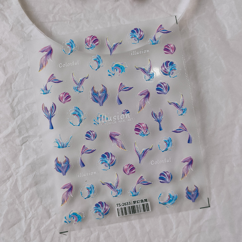 立体5d薄韧美甲贴纸背胶指甲贴纸饰品梦幻鱼尾美甲贴纸