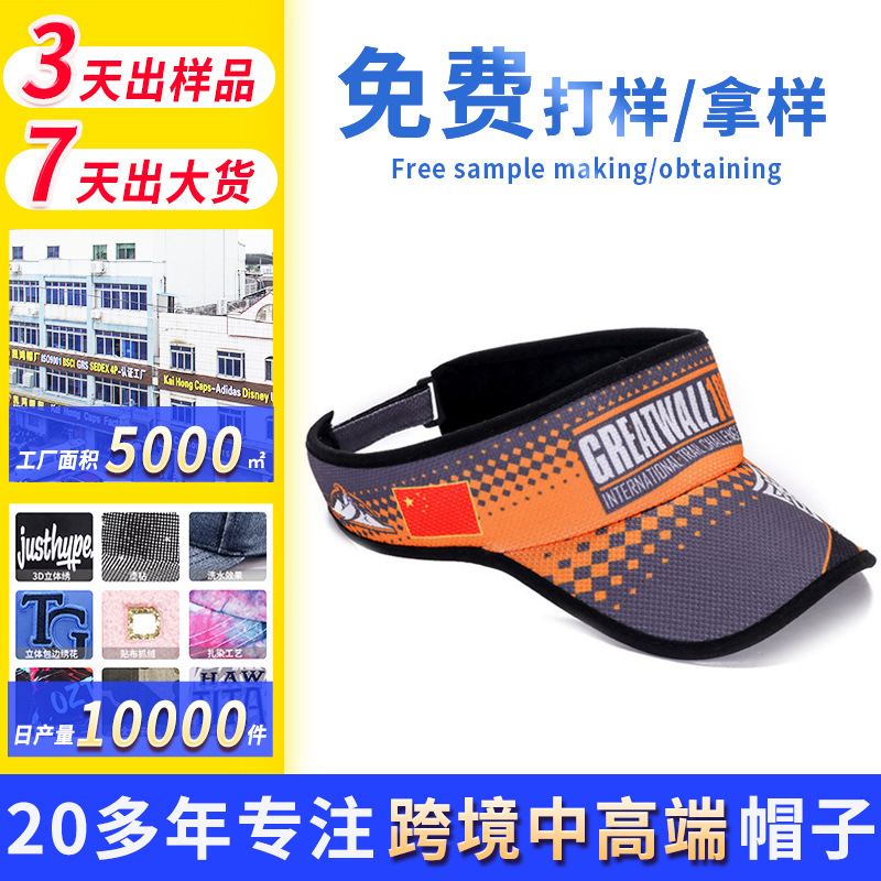新款休闲空顶帽男士春夏季速干透气遮阳帽子女运动印花户外防晒帽