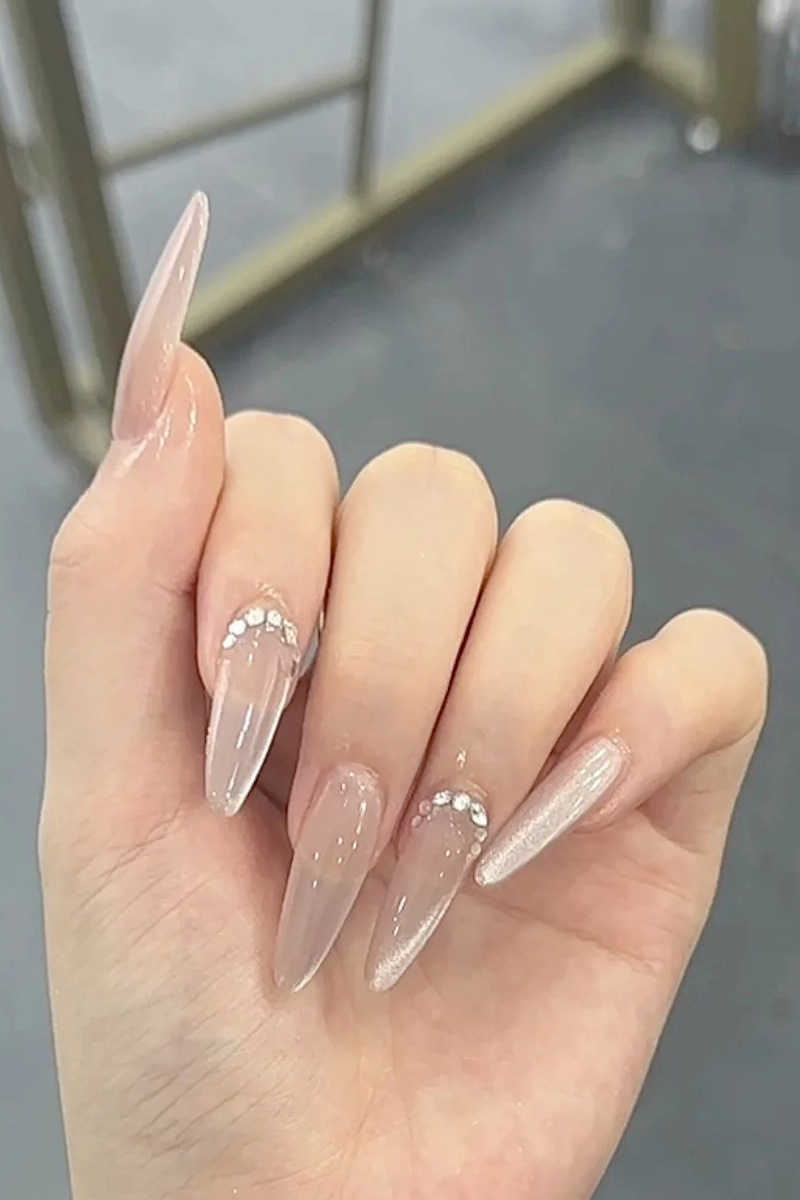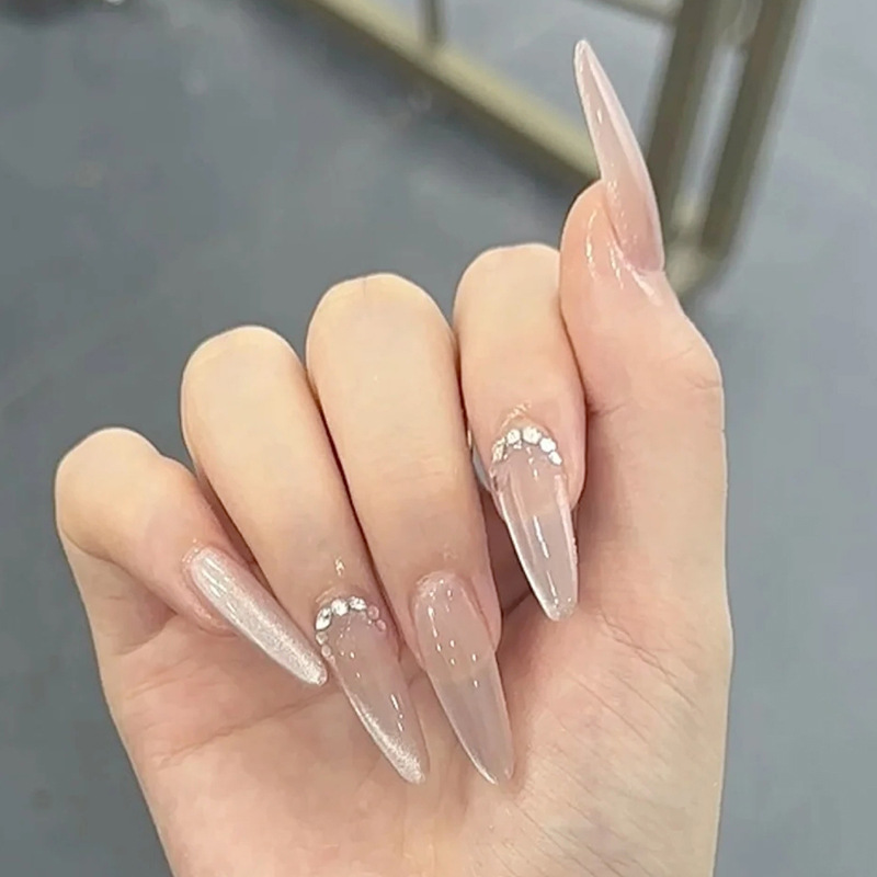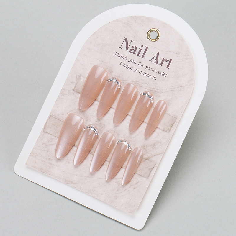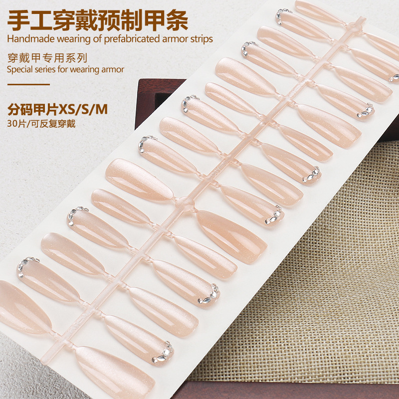 ins穿戴甲甲片高级感裸色猫眼水钻美甲片小红书爆款辣妹假指甲片