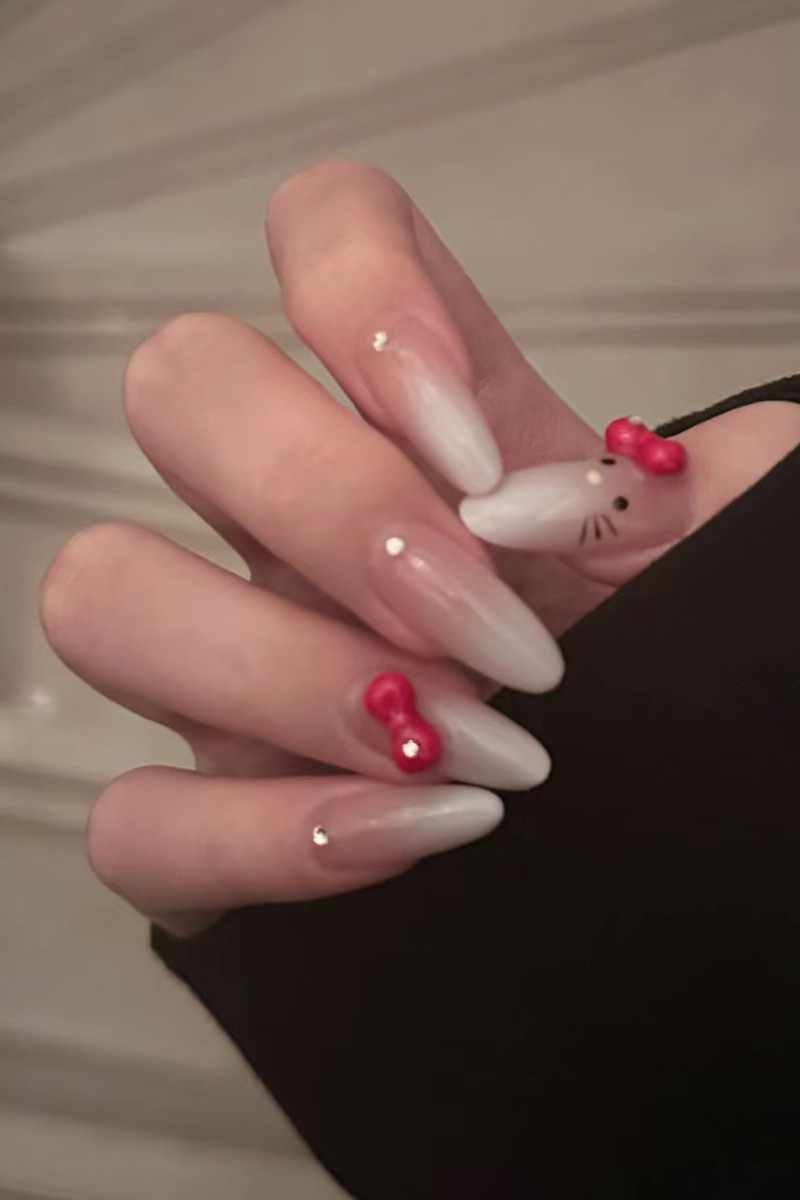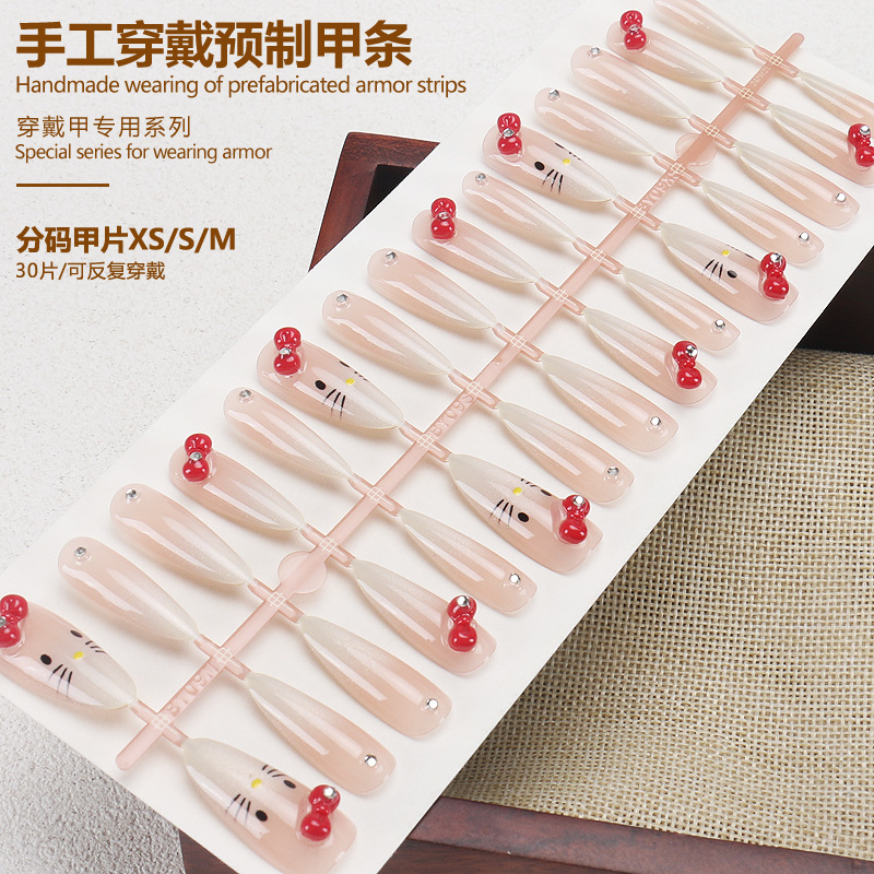 夏季穿戴甲高级感卡通猫眼渐变手工美甲甲片小红书爆款甜妹假指甲