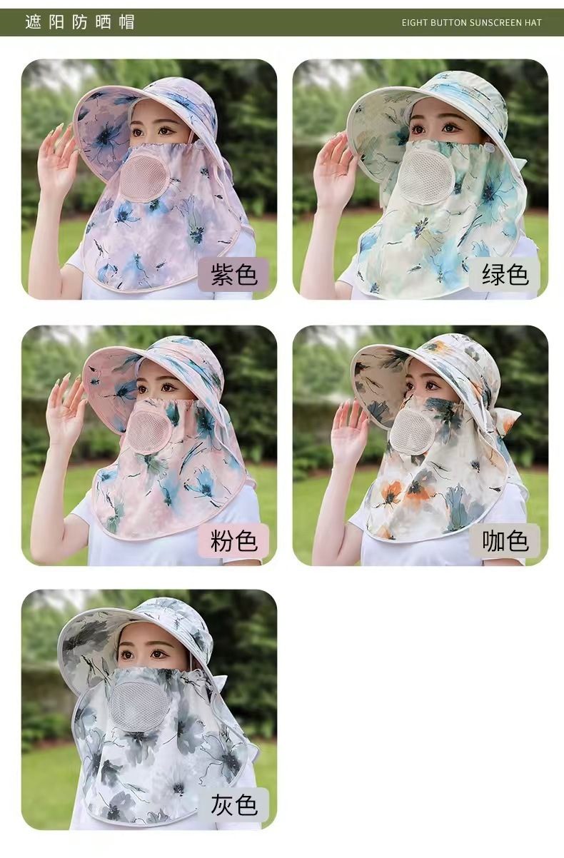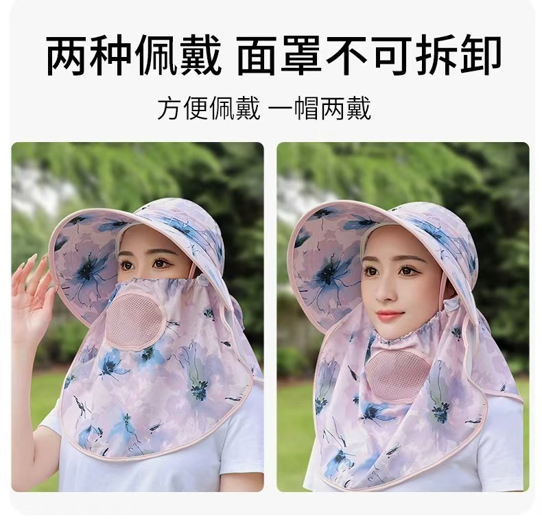 春夏透气冰丝防晒遮阳帽骑车防紫外线太阳帽女士遮脸干农活采茶帽