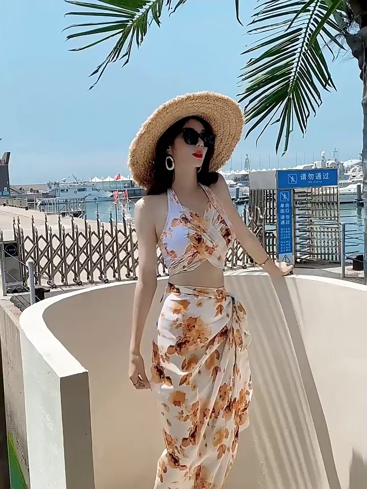 渡假海边温泉游泳衣女分体比基尼BIKINI三件套欧美高级感新款泳装