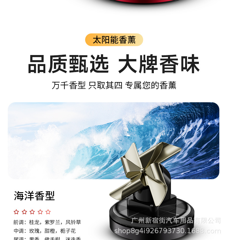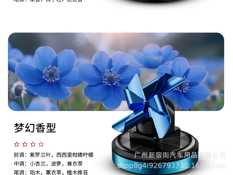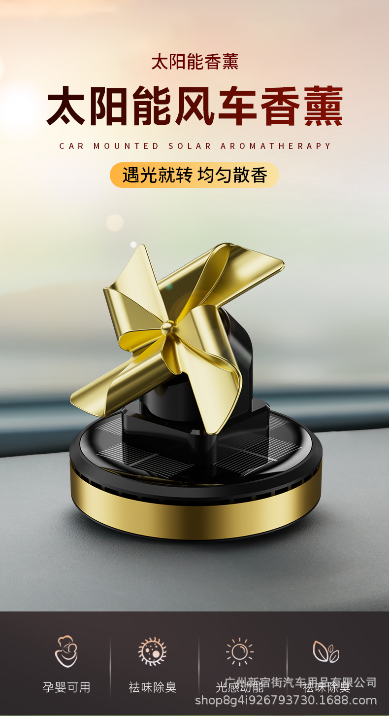 跨境热卖太阳能旋转车载大风车香薰创意车载香薰汽车香水摆件香氛