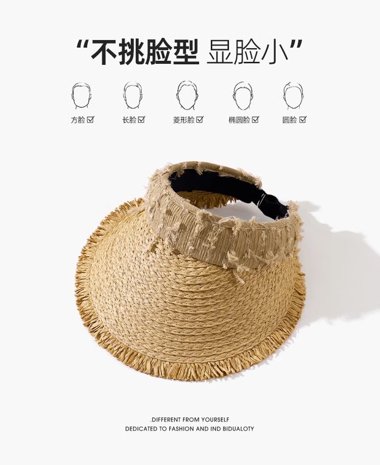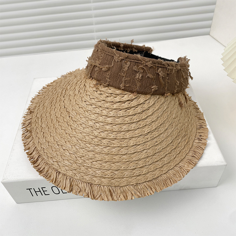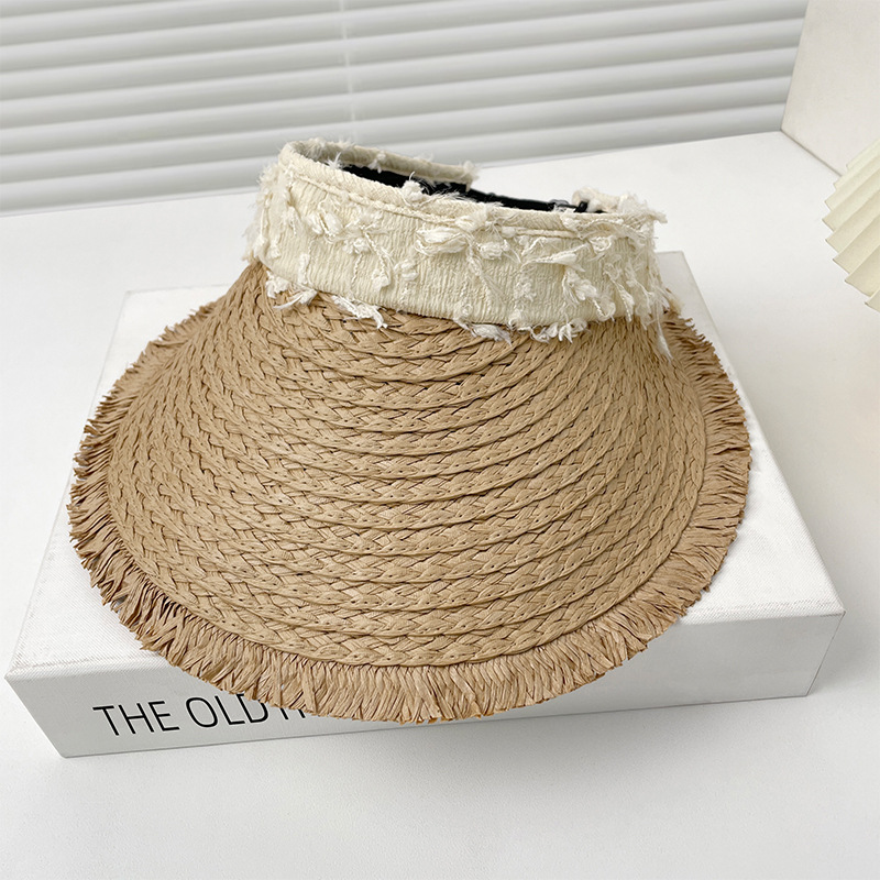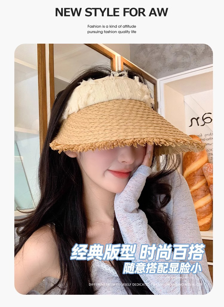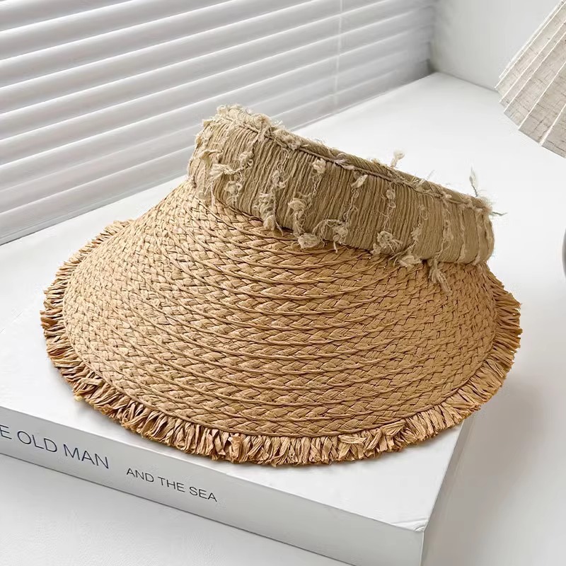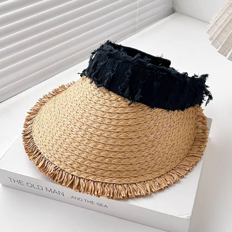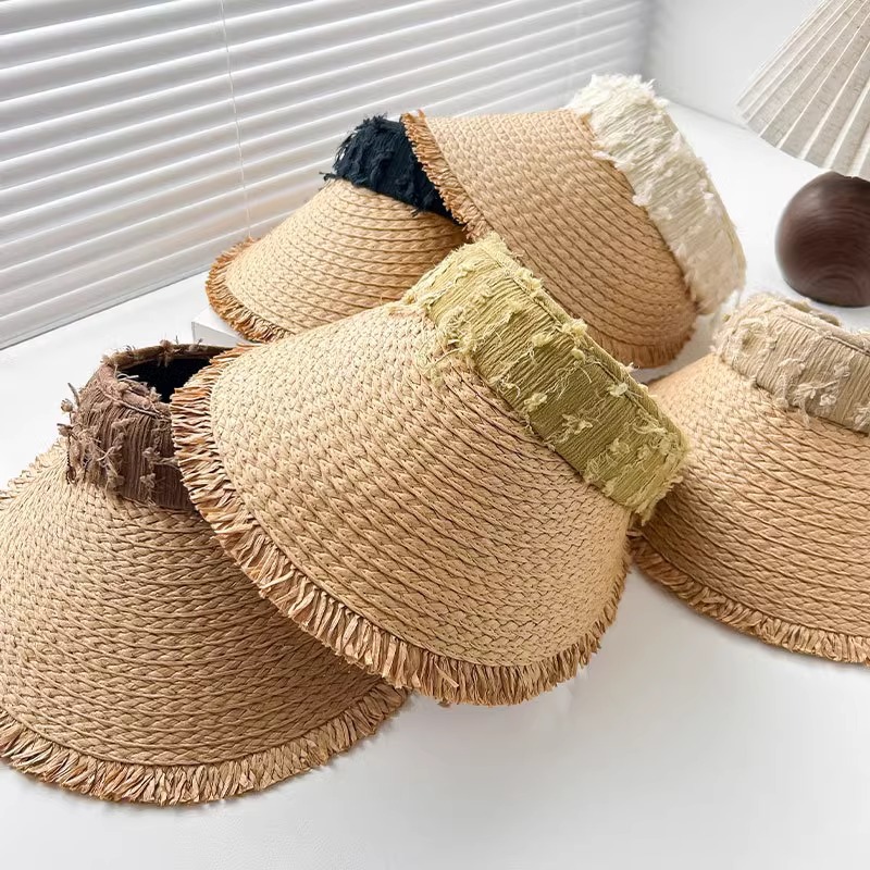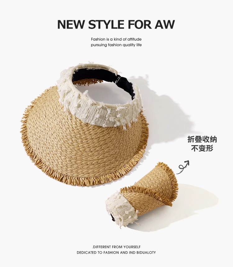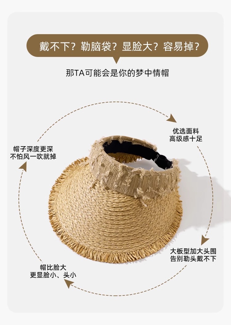 空顶草帽子女夏季海边度假沙滩帽草编太阳帽户外大帽檐遮阳防晒帽