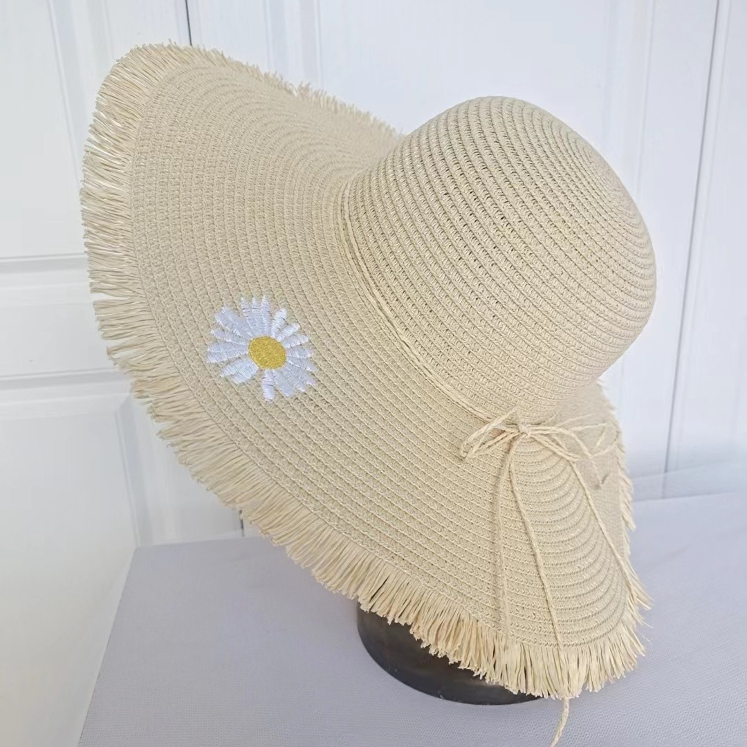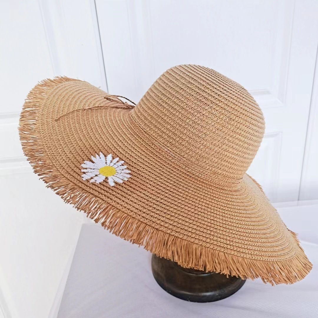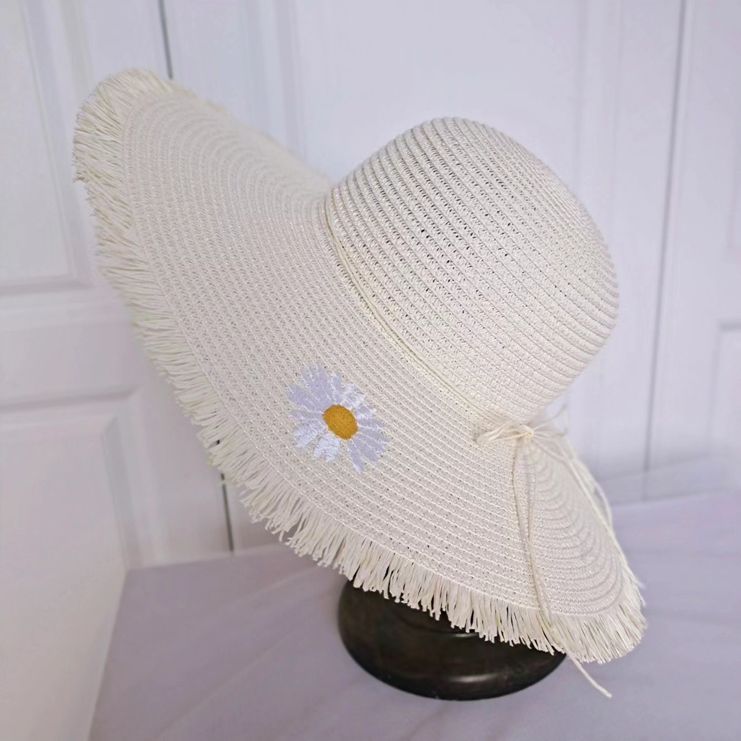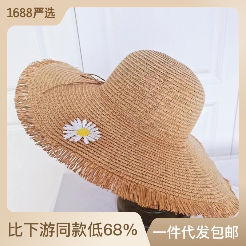 刺绣草帽女夏天防晒大檐帽子草编遮阳帽海边沙滩帽小清新菊花凉帽