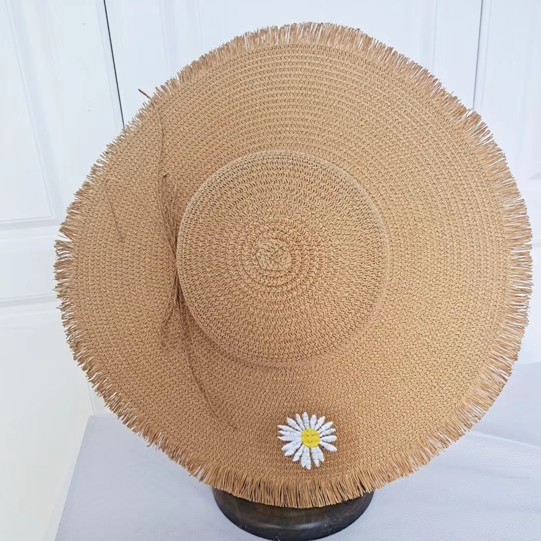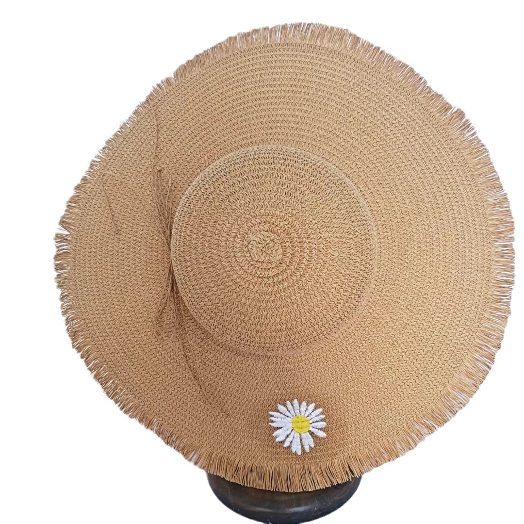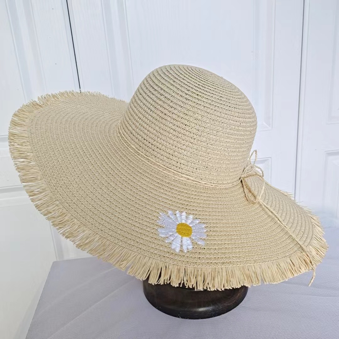 刺绣草帽女夏天防晒大檐帽子草编遮阳帽海边沙滩帽小清新菊花凉帽