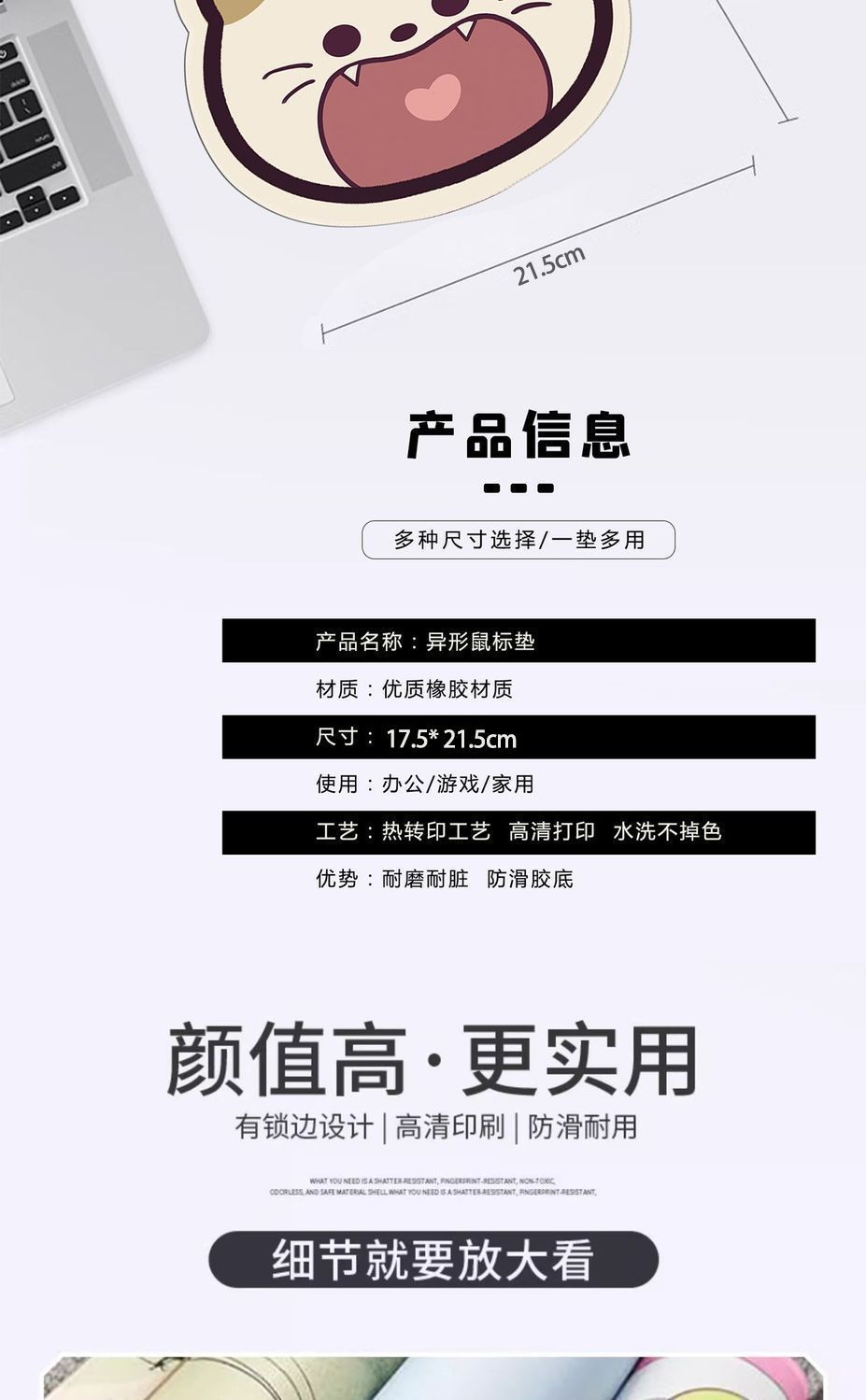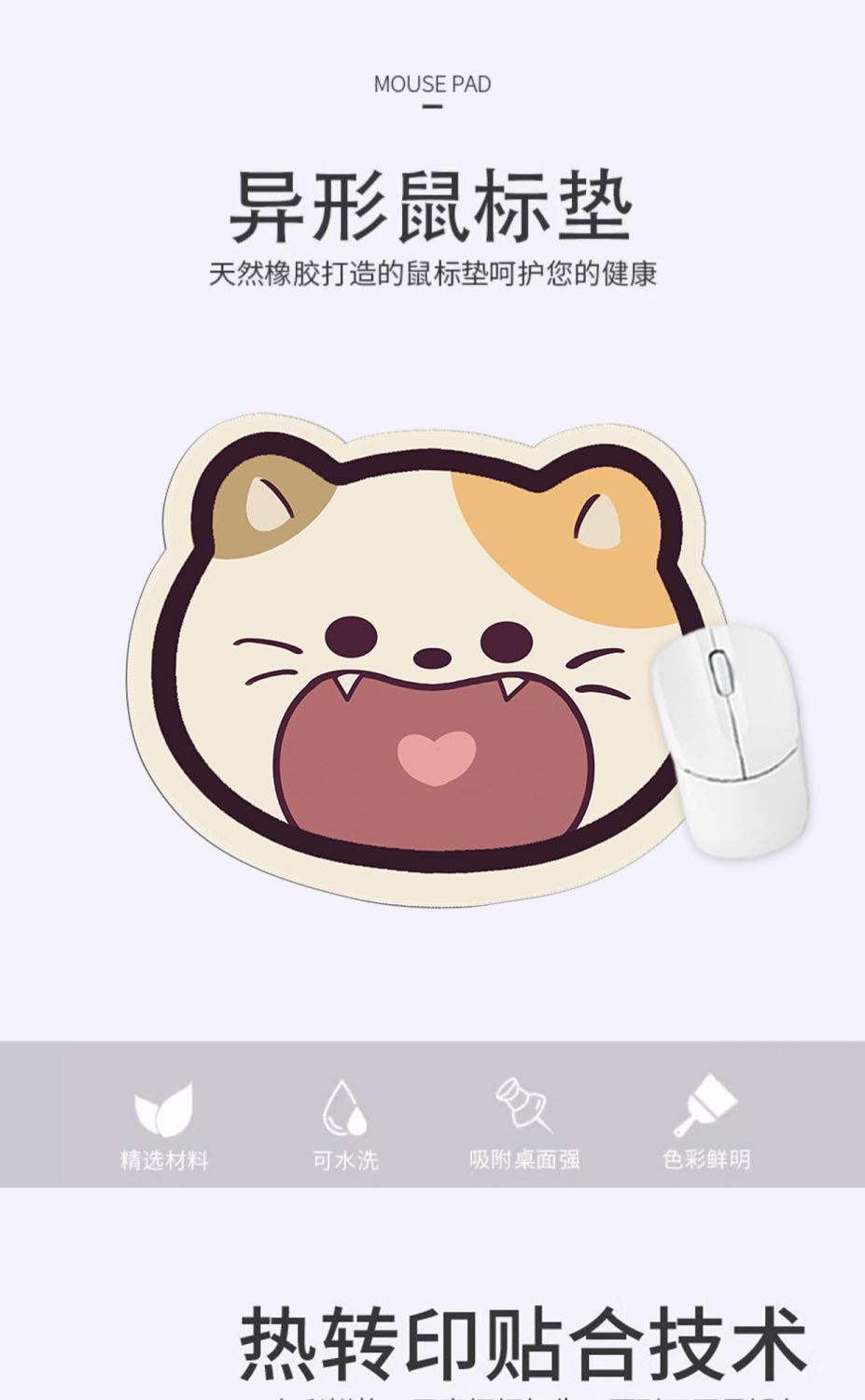 可爱猫咪鼠标垫小号异形办公桌垫护腕卡通ins桌垫电脑键盘滑鼠垫