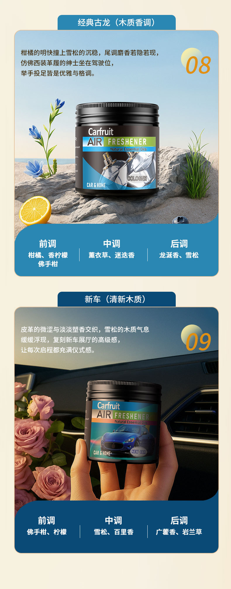 车载杯架香膏汽车固体芳香剂跨境英文版汽车香水车内去味新车黑冰