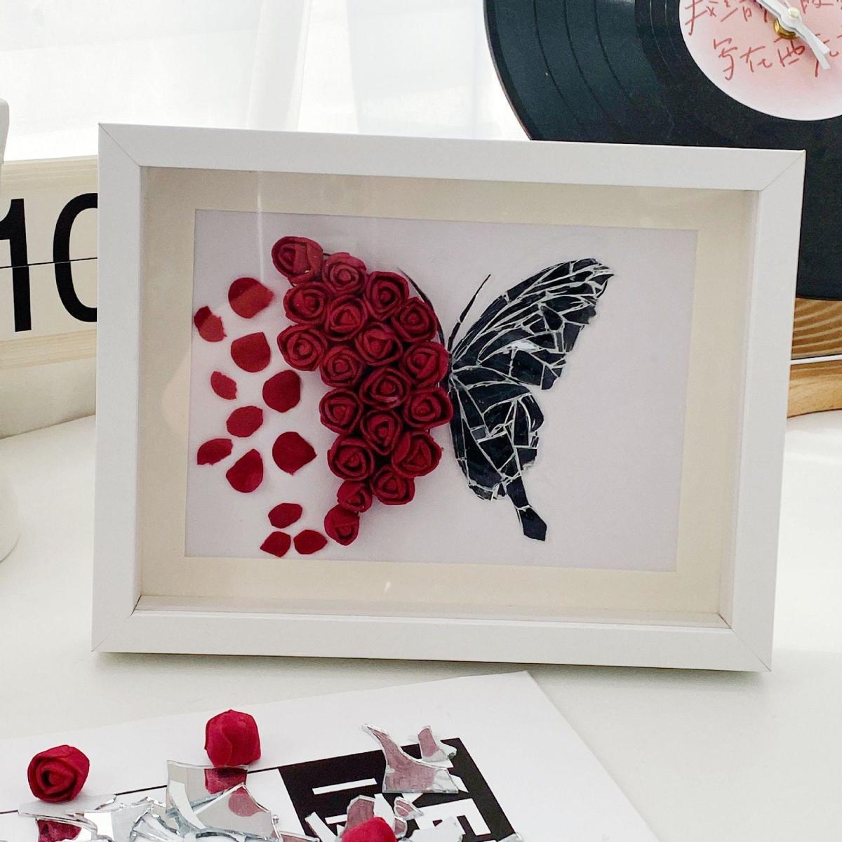 DIY永生玫瑰干花破碎蝴蝶镜相框摆件材料包情侣手工送女友520礼物