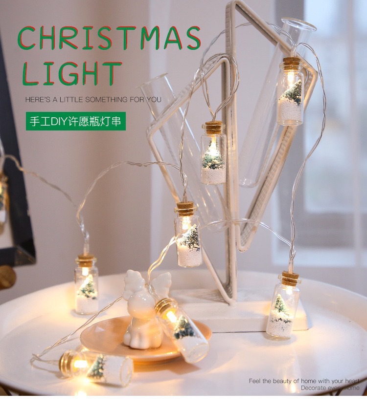 新品跨境led许愿瓶灯串圣诞树雪花电池盒装饰灯圣诞节日装饰串灯