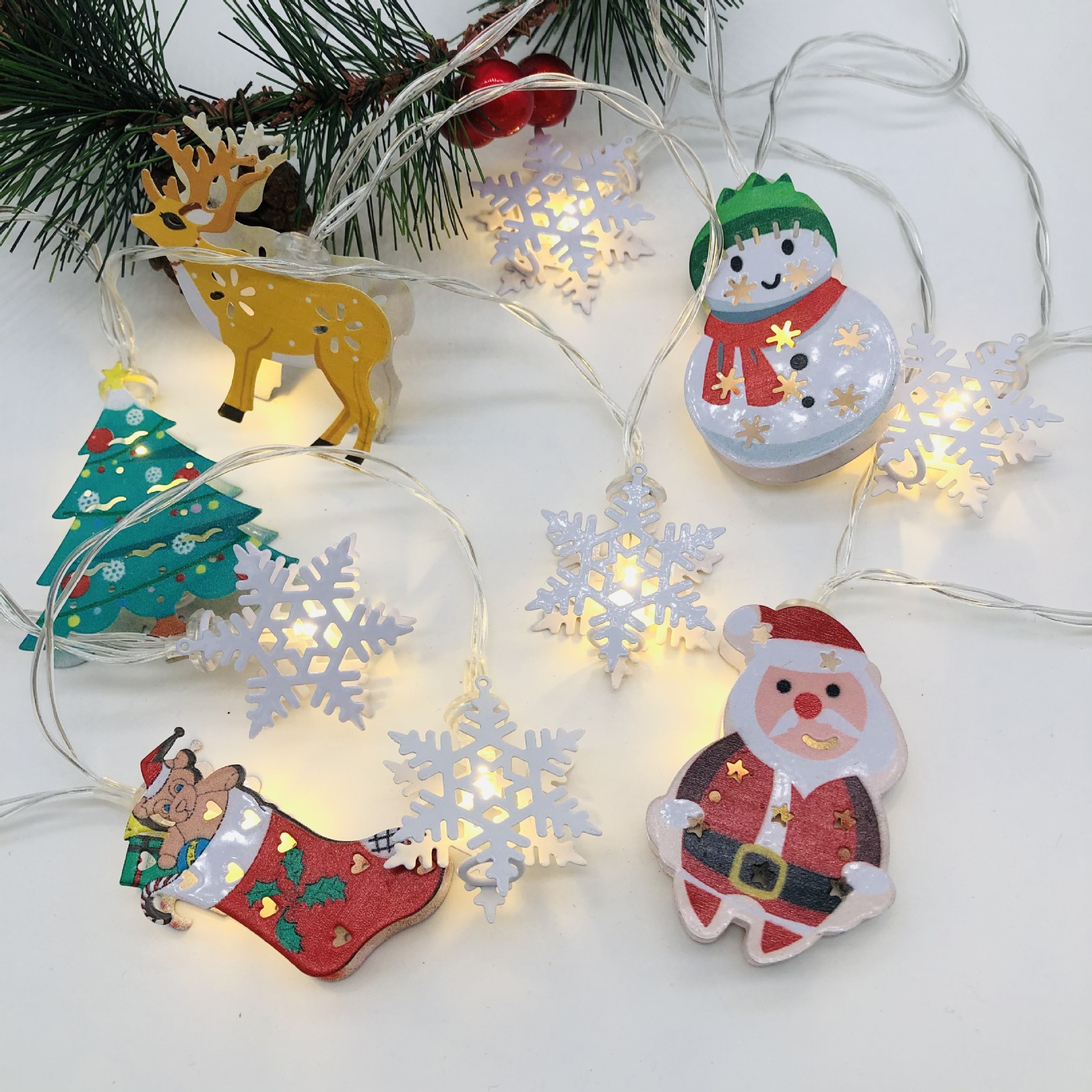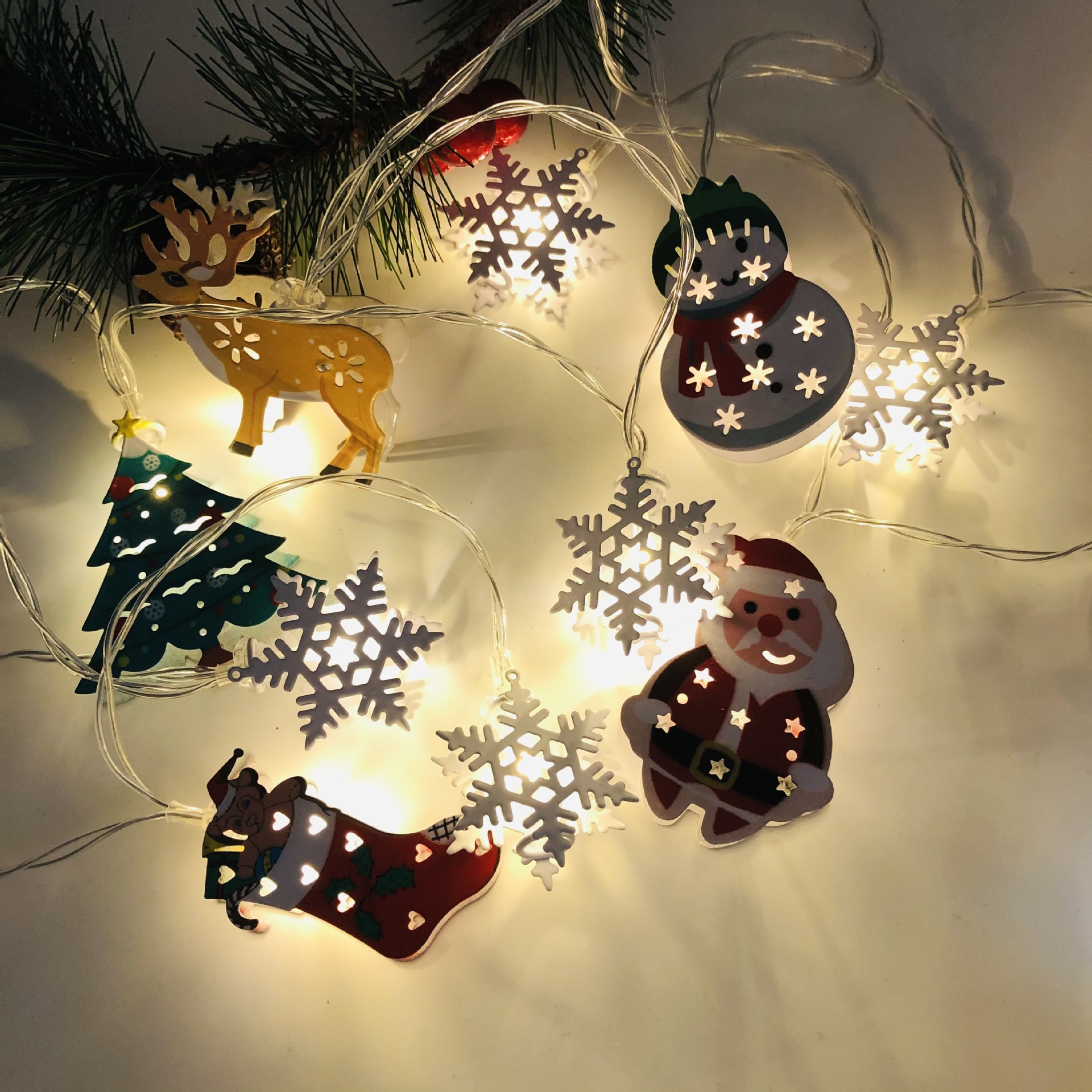 2021新款LED圣诞老人雪人灯串麋鹿圣诞树灯串袜子圣诞装饰灯USB