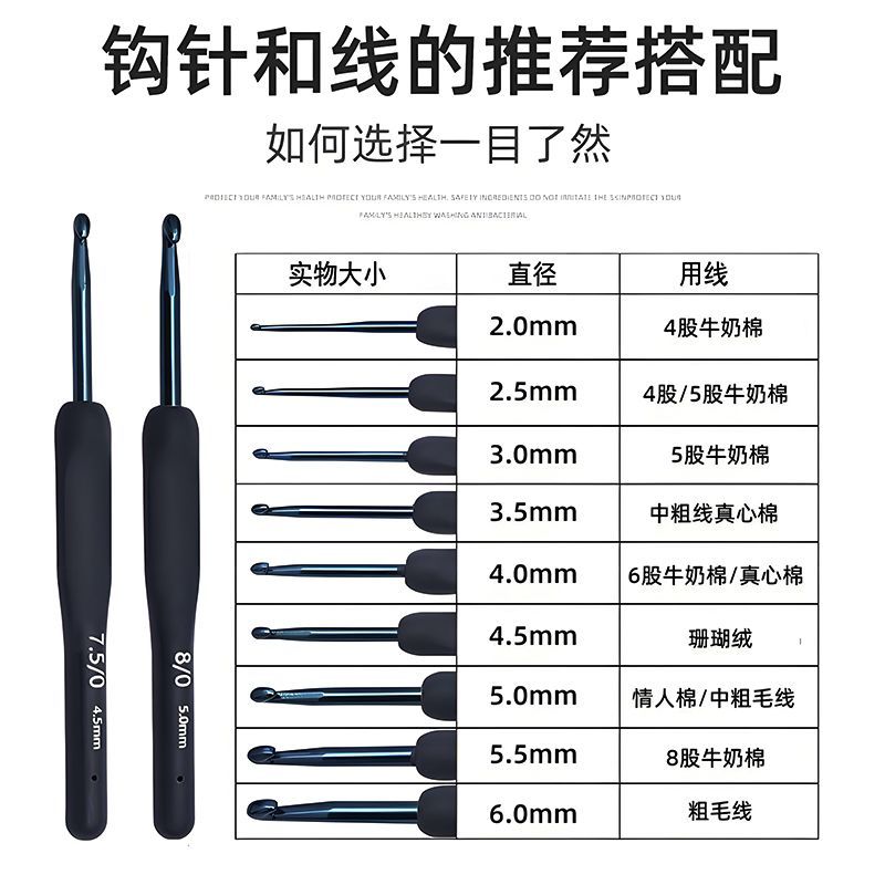 | blue soft handle crochet [2-6mm 9 pcs] get stitch marker sets for free(蓝色软柄钩针【2-6mm 9支】送记号扣套装) | USD $3.29 | 999998 piece available |