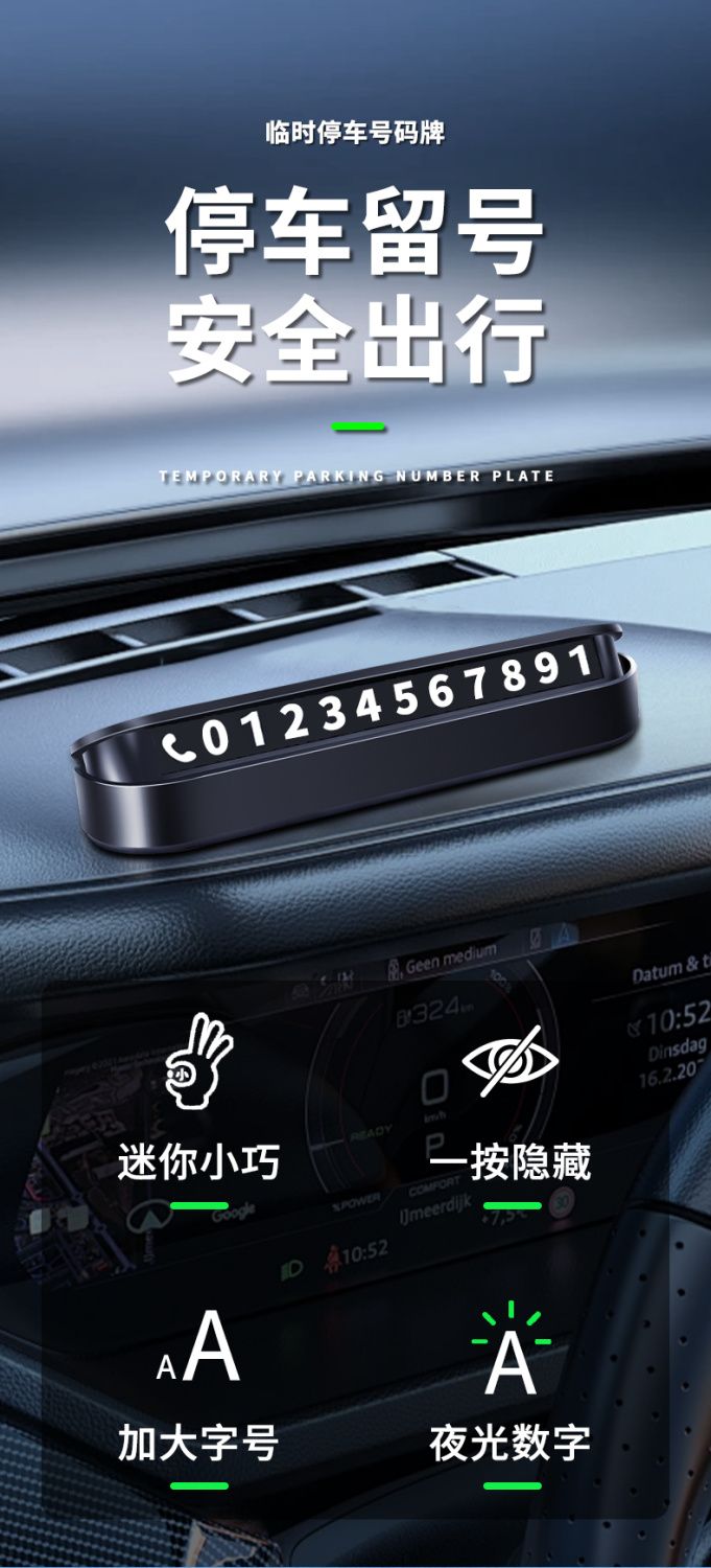 2024爆款挪车电话牌车用车载临时停车号码移车牌摆件汽车用品高端