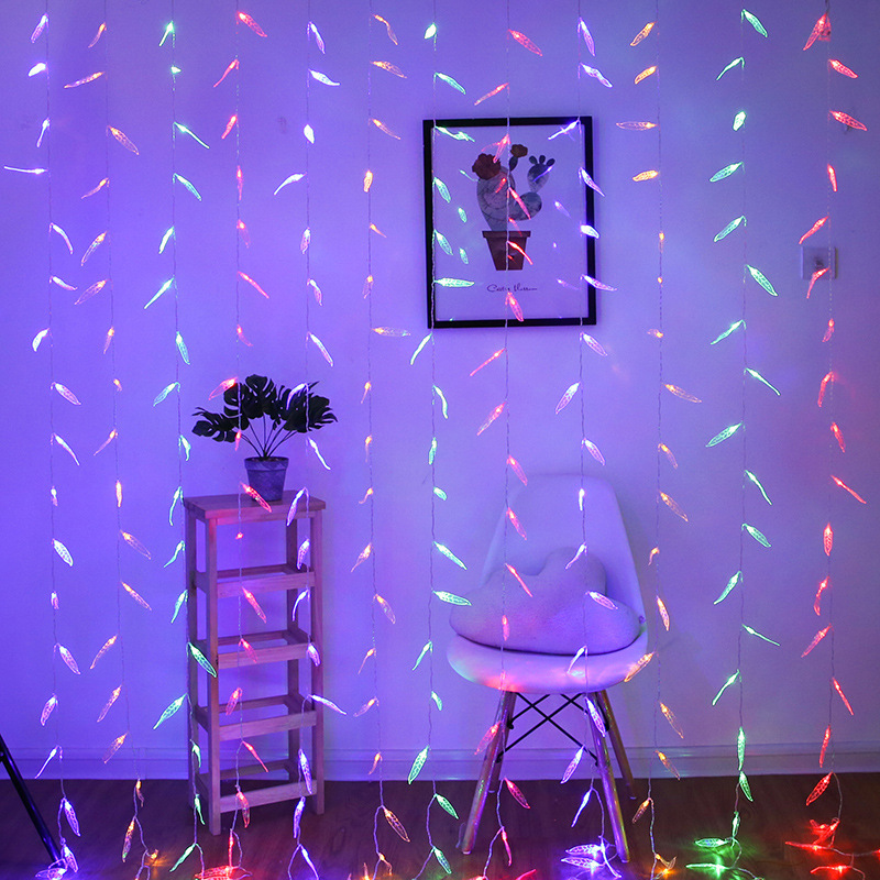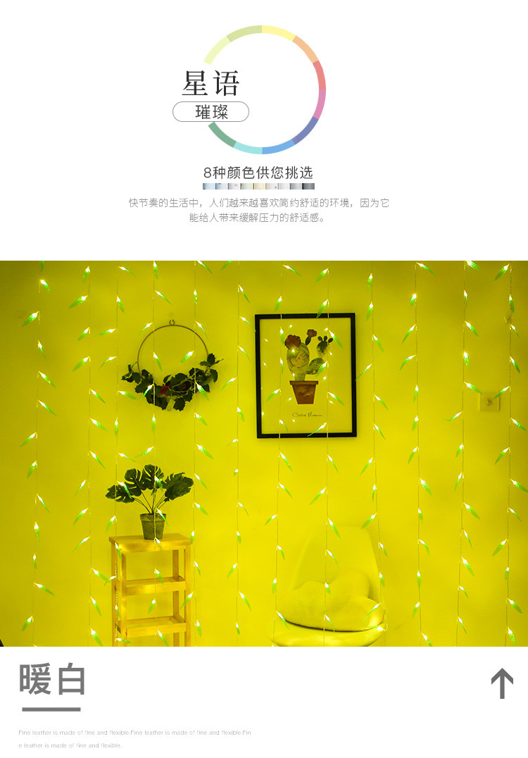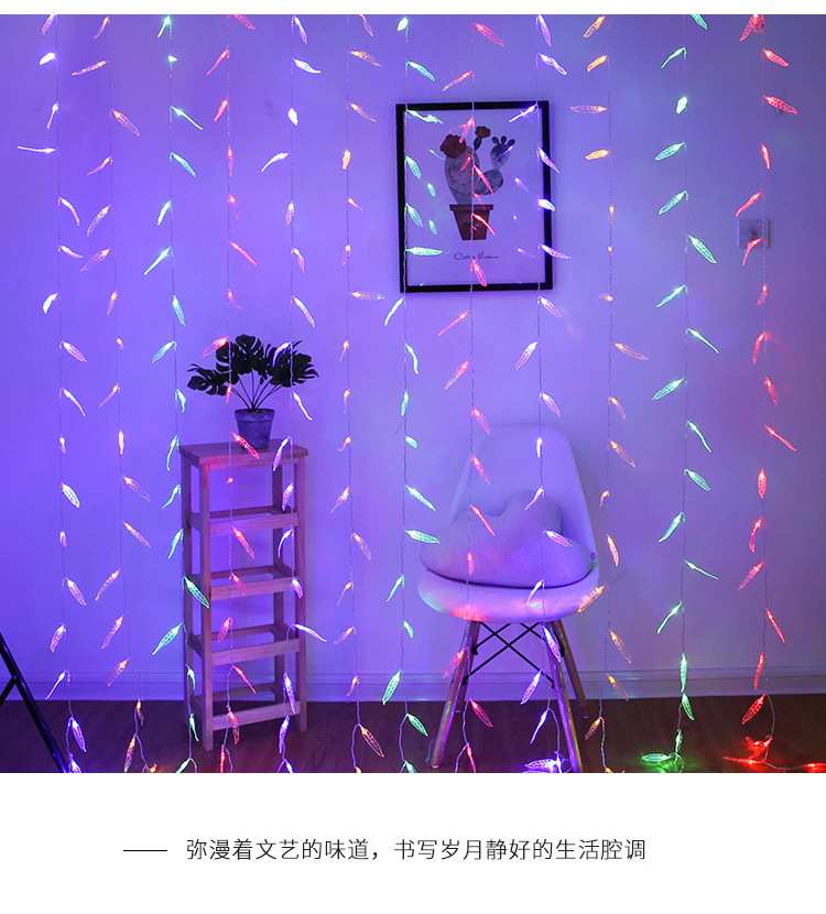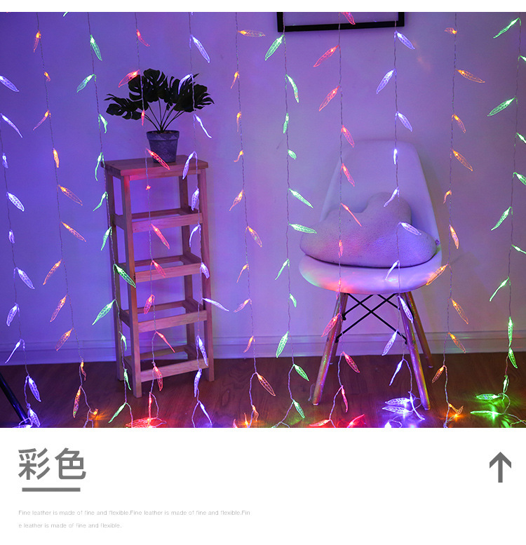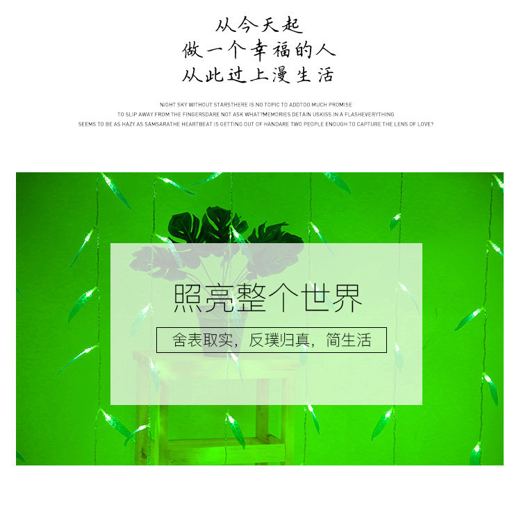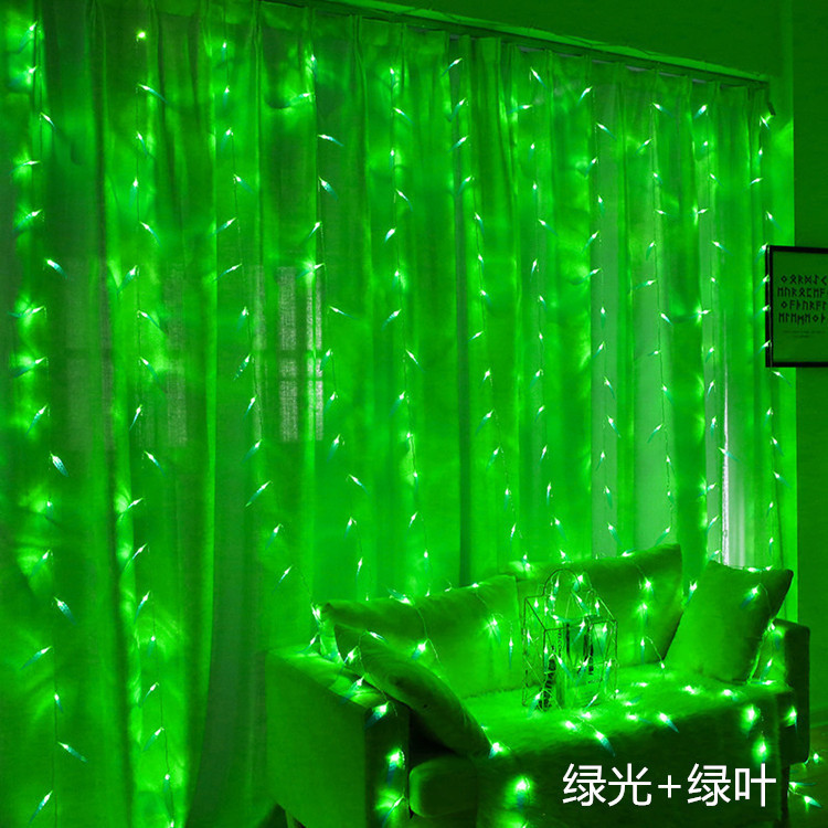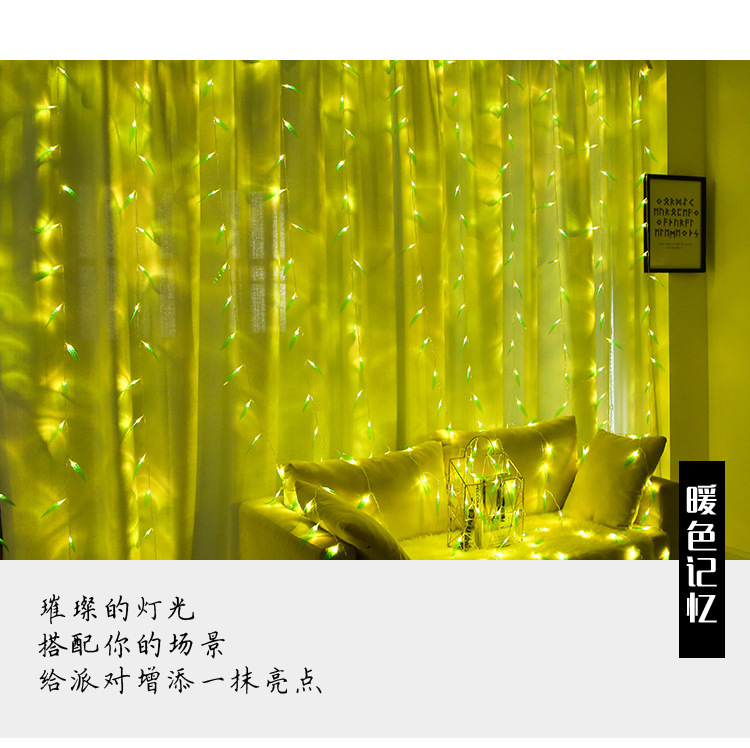 led3*3米柳叶窗帘灯冰条瀑布灯户外防水柳树叶子造型背景墙装饰灯