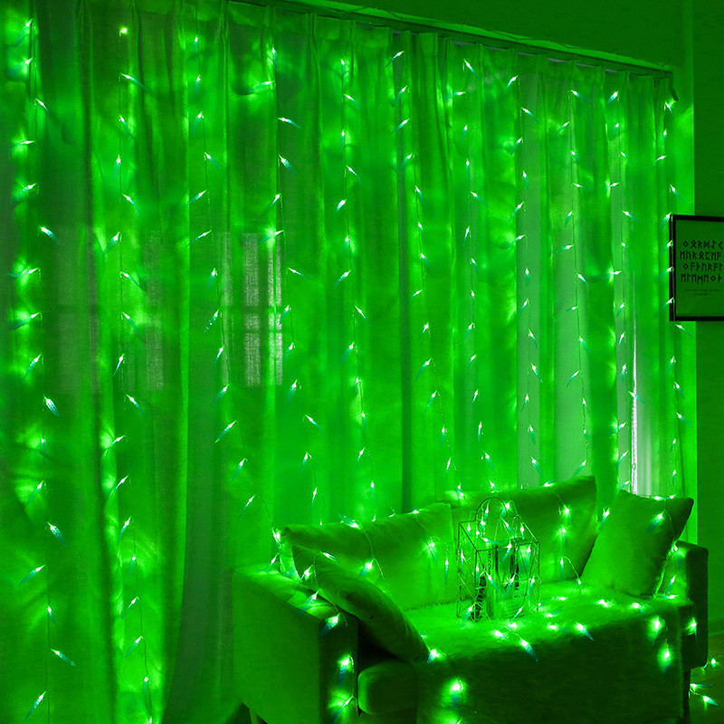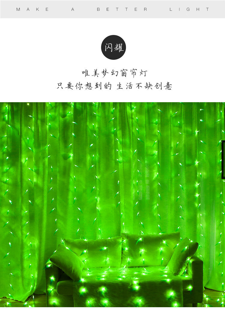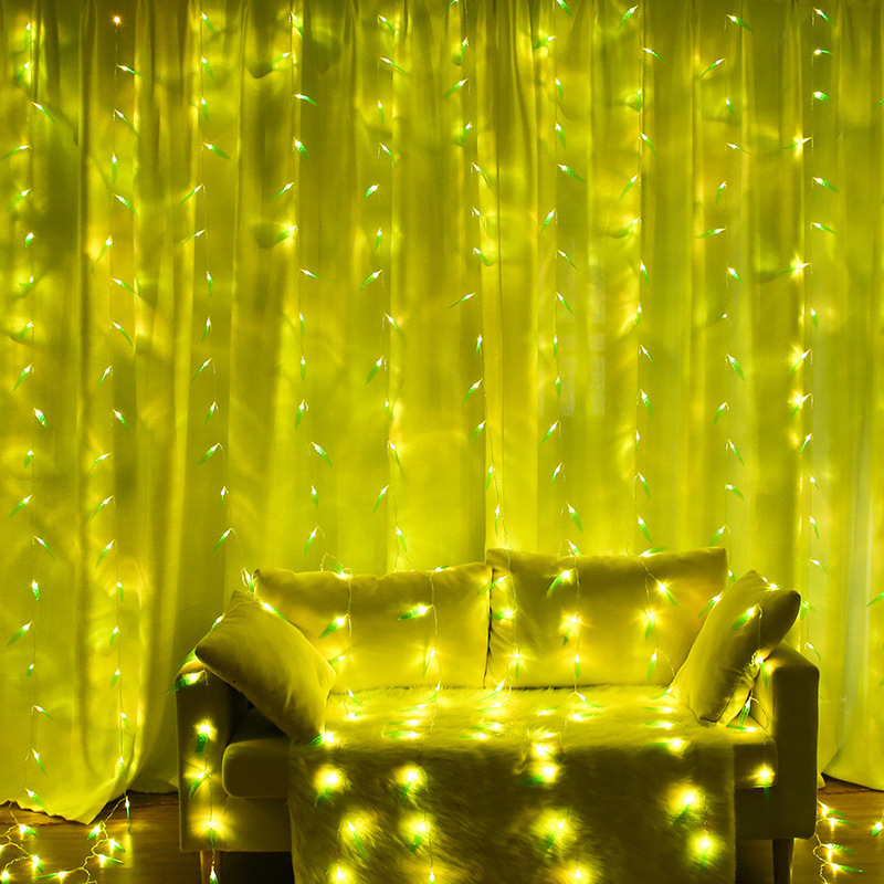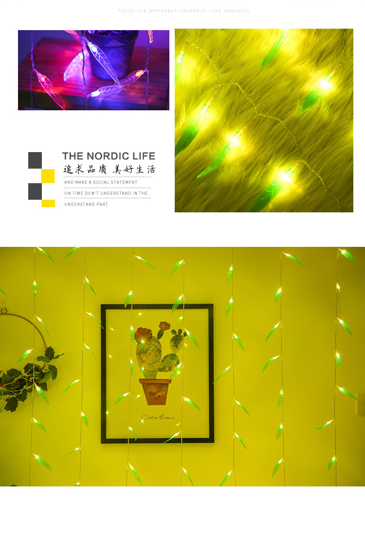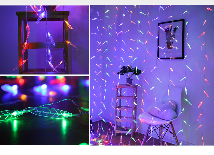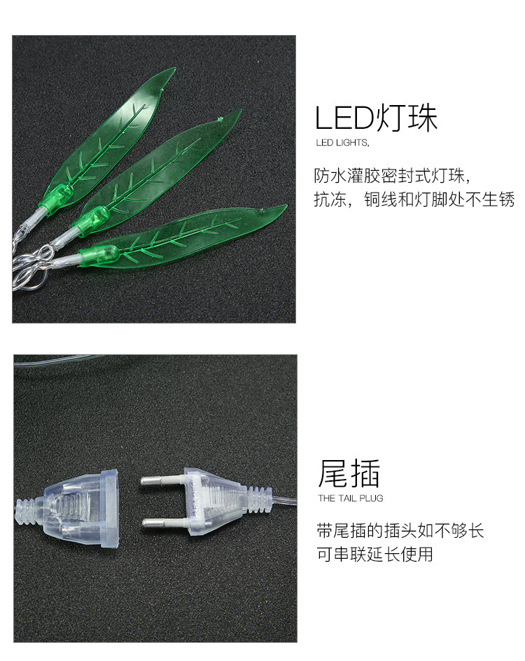 led3*3米柳叶窗帘灯冰条瀑布灯户外防水柳树叶子造型背景墙装饰灯