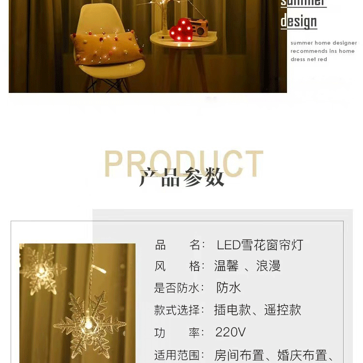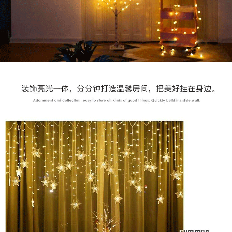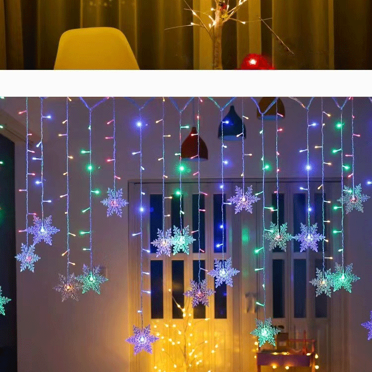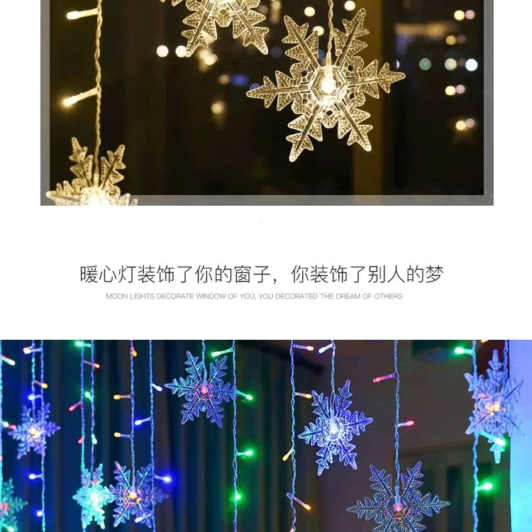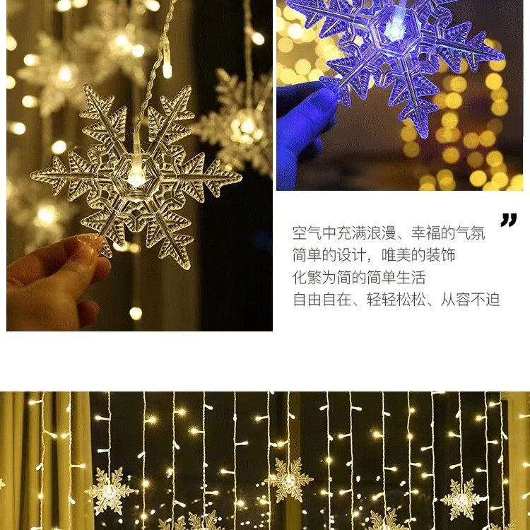 led雪花窗帘灯圣诞装饰灯冰条灯节日室内彩灯庭院派对灯串